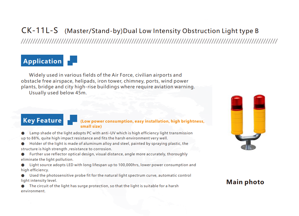 Under the categories OBSTRUCTION LIGHTS and AVIATION OBSTRUCTION LIGHTS, the JLUX CK-11L-S delivers durability, energy efficiency, and operational security in one cost-effective solution.