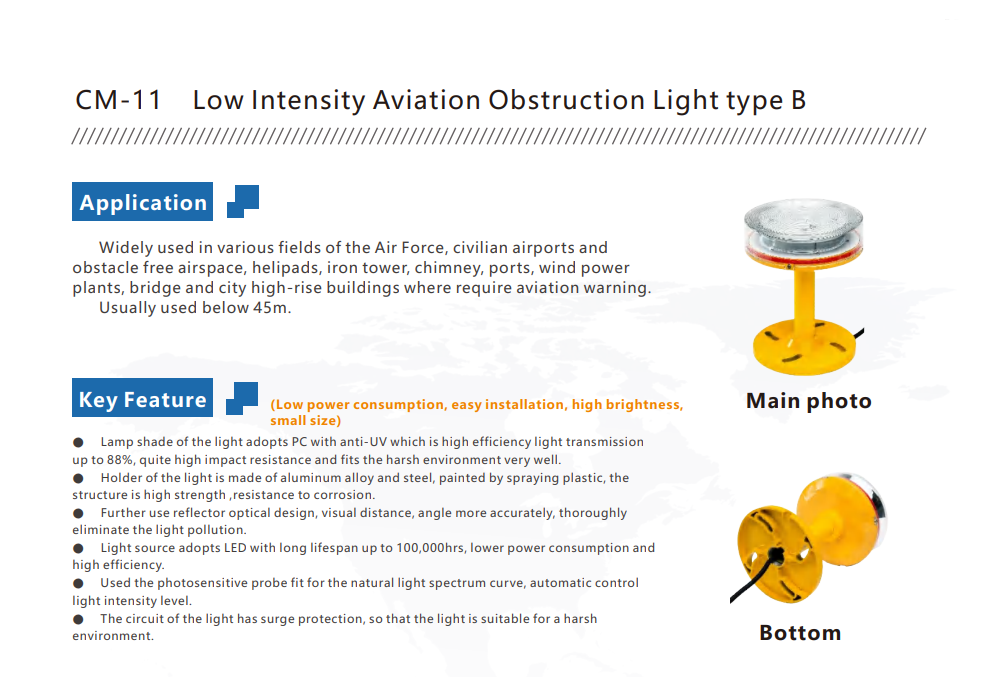 Categorized under OBSTRUCTION LIGHTS and AVIATION OBSTRUCTION LIGHTS, the JLUX CM-11 combines durability, efficiency, and high visibility to deliver excellent value for aviation and industrial safety applications.