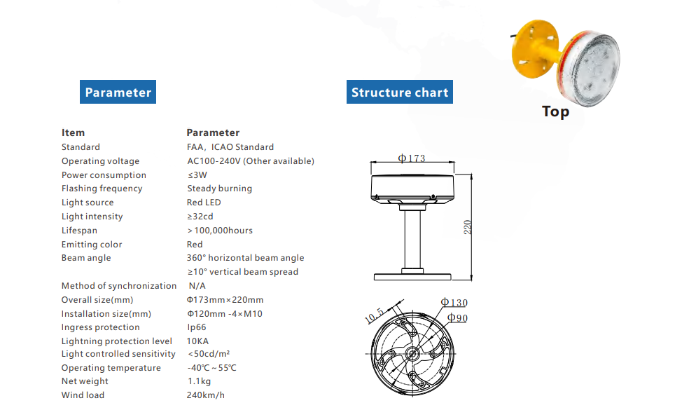 - Bright red LED for aircraft warning compliance