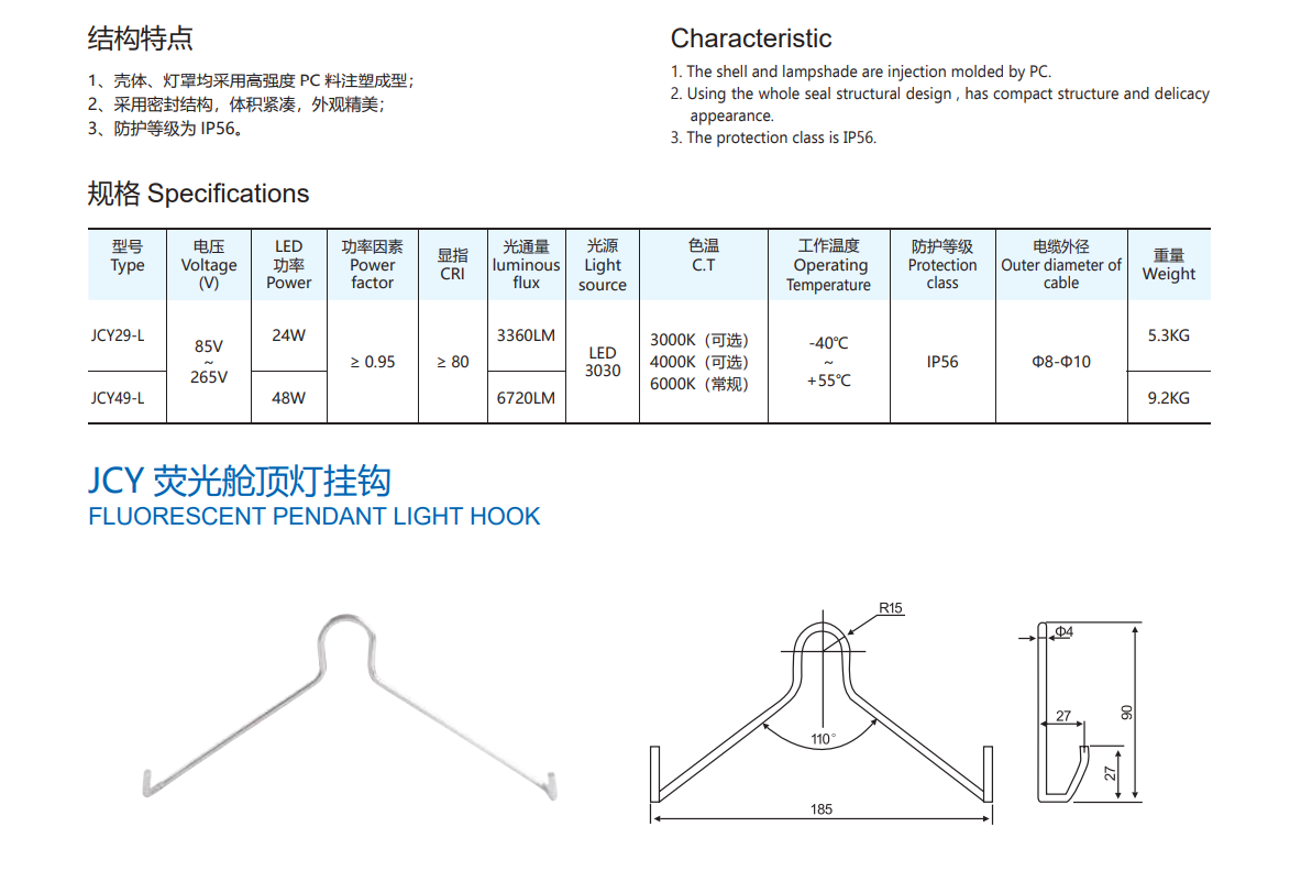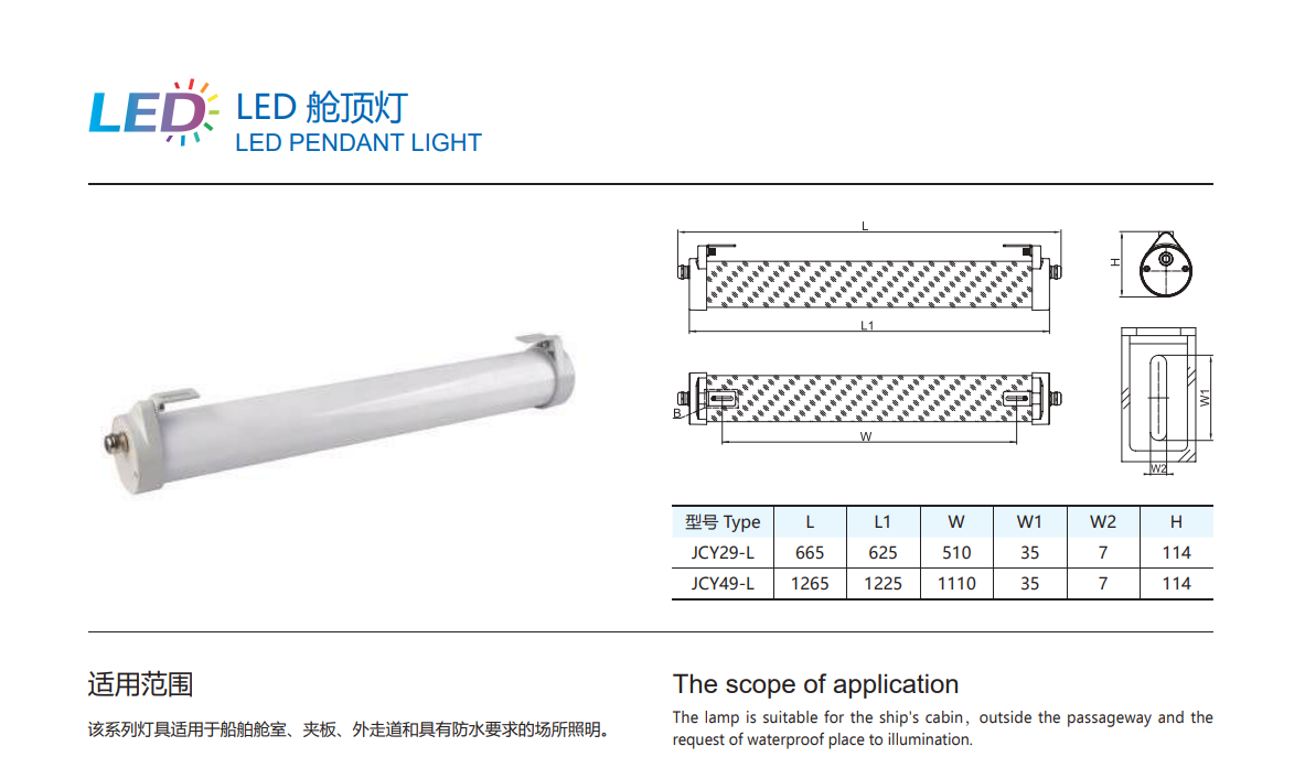 JLL Electrical Sdn Bhd Products JLUX MARINE OFFSHORE INTEGRATED LED PENDANT LIGHT 265V IP56 CRI80 [24W/48W] [3,360LM/6,720LM] [3000K/4000K/6000K] [JCY29/JCY49] [2FEET/4FEET]