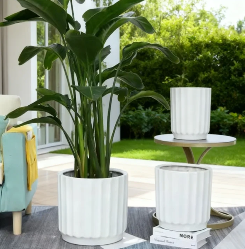 Set Of 3: L: 36cm H X 36cm D M: 33cm H X 28cm D S: 30cm H X 22cm D Elevate your garden or indoor space with our PC1247-19428-3 Ceramic Pot from the Elegant Ceramic Pot collection. This metic...