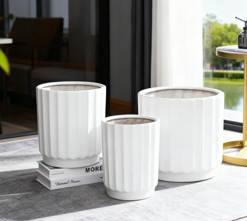 Potco Base Supply Products Ceramic Pot PC1247-19428-3 Nordic Ceramic Flowerpot Light Luxury High-End Simple White Living Room Large Flowerpot 北欧简约轻奢陶瓷花盆 白色高端大号客厅落地花盆