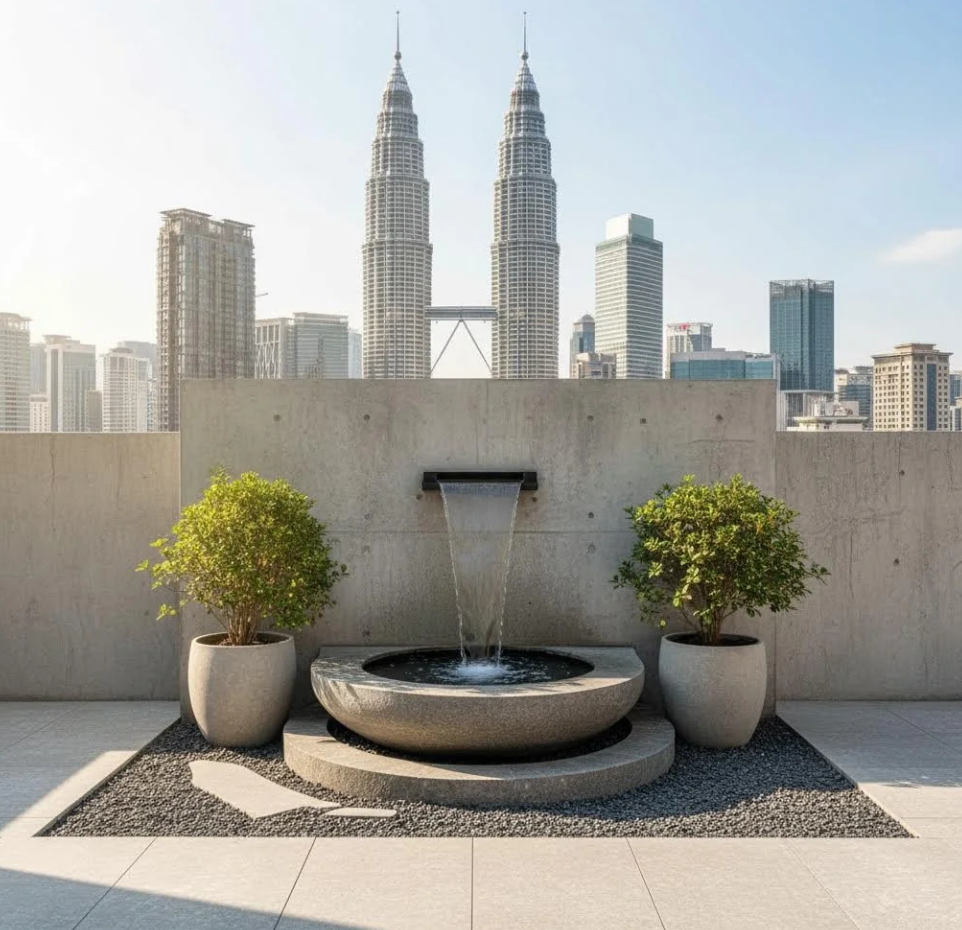 Garden Water Feature Fountain With FRP Planter Malaysia 马来西亚花园水景喷泉及FRP花盆 Air Pancutan Air Taman Dengan FRP Planter Malaysia