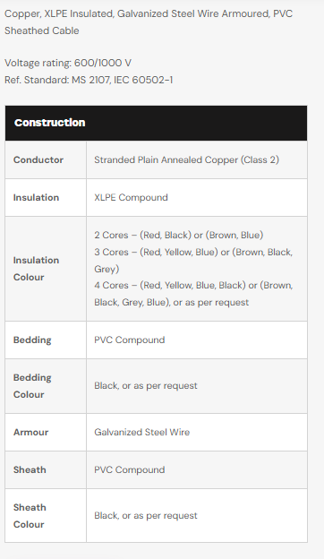 B & L Electric Sdn Bhd Products TONN XLPE/SWA/PVC ARMOURED CABLE