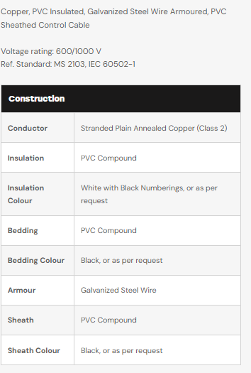 B & L Electric Sdn Bhd Products TONN P/S/P MULTICORE ARMOURED CABLE