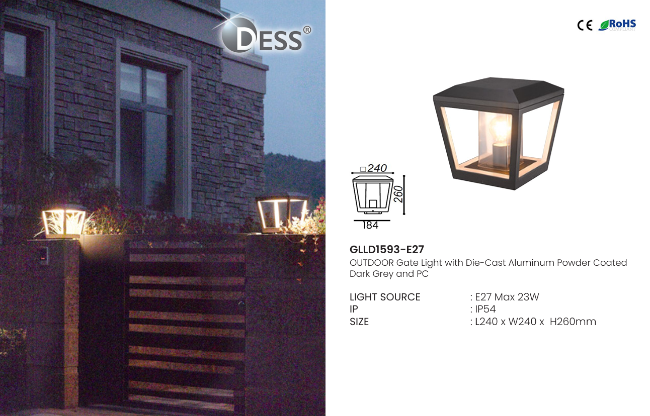 - Product Name: DESS GLLD1593 E27 Outdoor Gate Light Fitting
