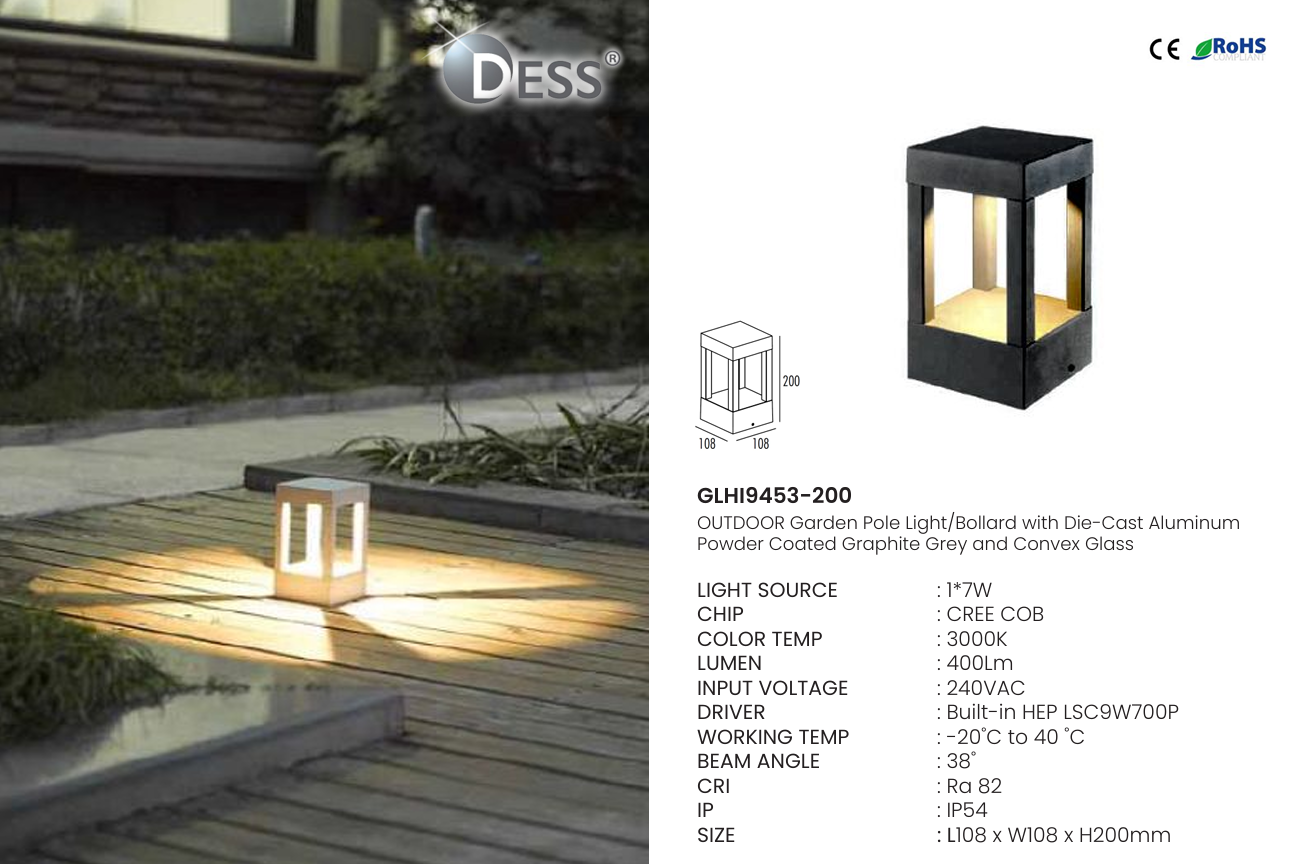 DESS GLHI9453-200 OUTDOOR LED GARDEN LIGHT 240V 1*7W 400LM 3000K IP54 CRI82