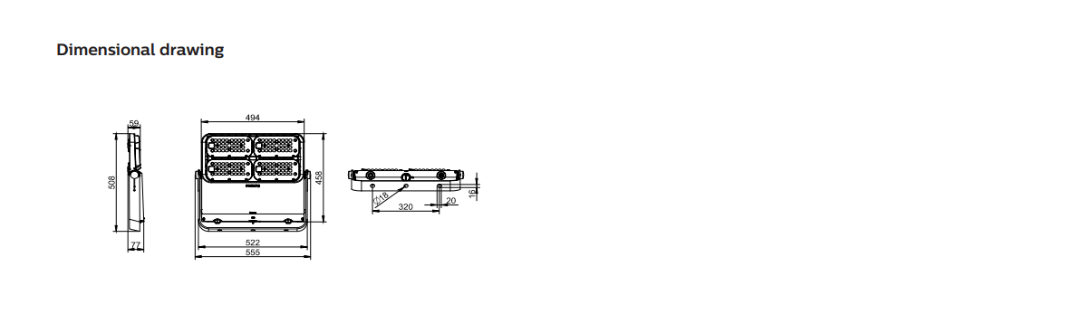With a Color Rendering Index (CRI) of 70, the luminaire ensures adequate colour clarity for industrial and outdoor applications. The IP66 protection rating guarantees strong resistance against dust and heavy rain, ensuring reliable performance in harsh environmental conditions.