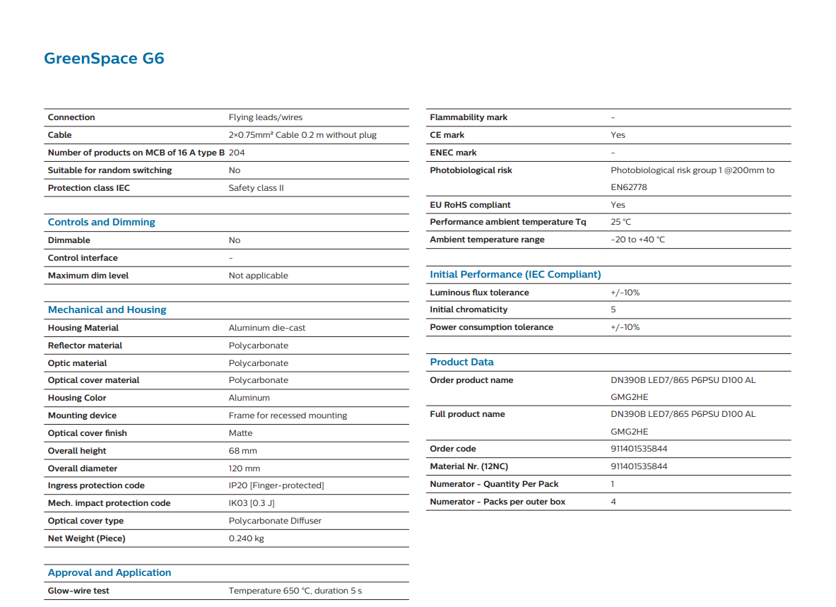 The PHILIPS DN390B GREENSPACE G6 LED7/865 DOWNLIGHT 6500K COOL DAYLIGHT 240V 5.8W 700LM IP20 CRI80 (911401535844) is a compact, energy-efficient lighting solution designed for modern indoor environments. As part of the PHILIPS DOWNLIGHTS category, this model delivers reliable performance, clean aesthetics, and consistent illumination suitable for both residential and commercial applications.