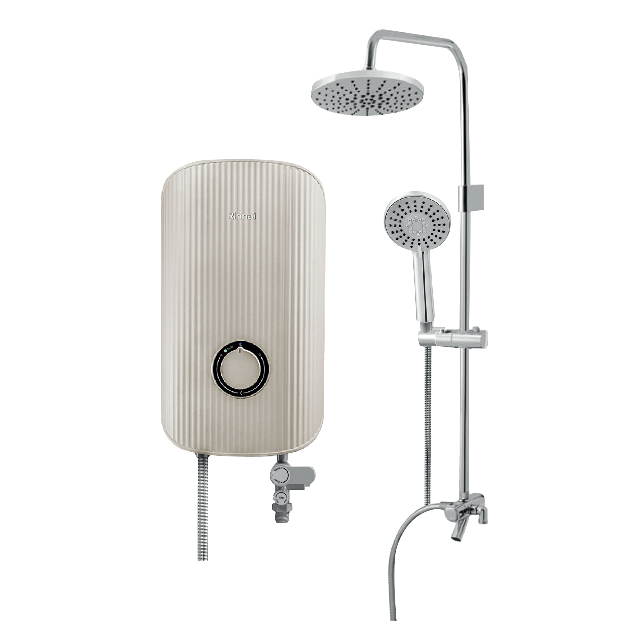 Rinnai Sen Electric Water Heater No Pump - Hand Shower REI-E380NP-C-BG (Sandy Beach) Rain Shower Accessory - RRS-C2XX Key Features: Extra Large Rainshower Head (8 inches) Extra Water Fau...