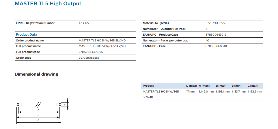 - Product Name: PHILIPS T5 MASTER TL5 HO LED Tube 4FT