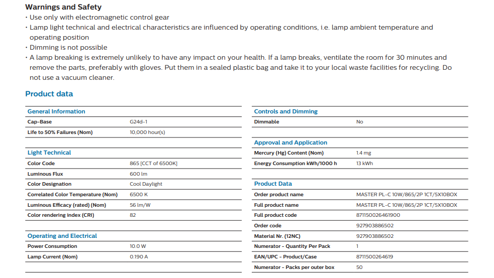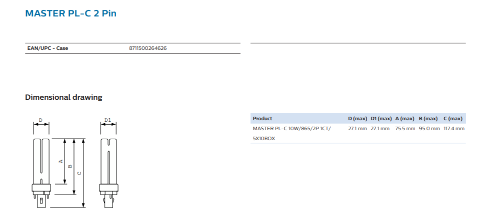 - Product Name: PHILIPS MASTER PLS G24D 2-Pin Fluorescent Tube