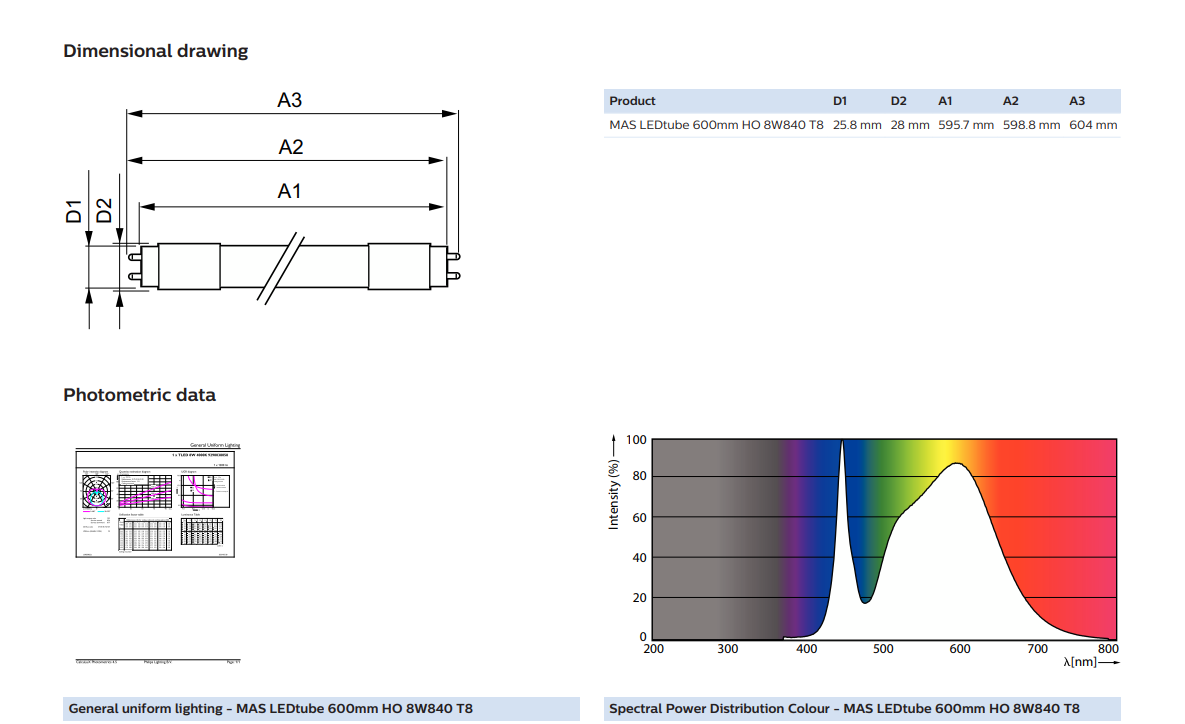 PHILIPS MASTER LED TUBE T8 4000K COOL WHITE G13 240V 8W 1,200LM 60,000HOURS CRI80 600MM (LEDTUBE TL-D 18W REPLACEMENT EM/MAINS) [929003805808]