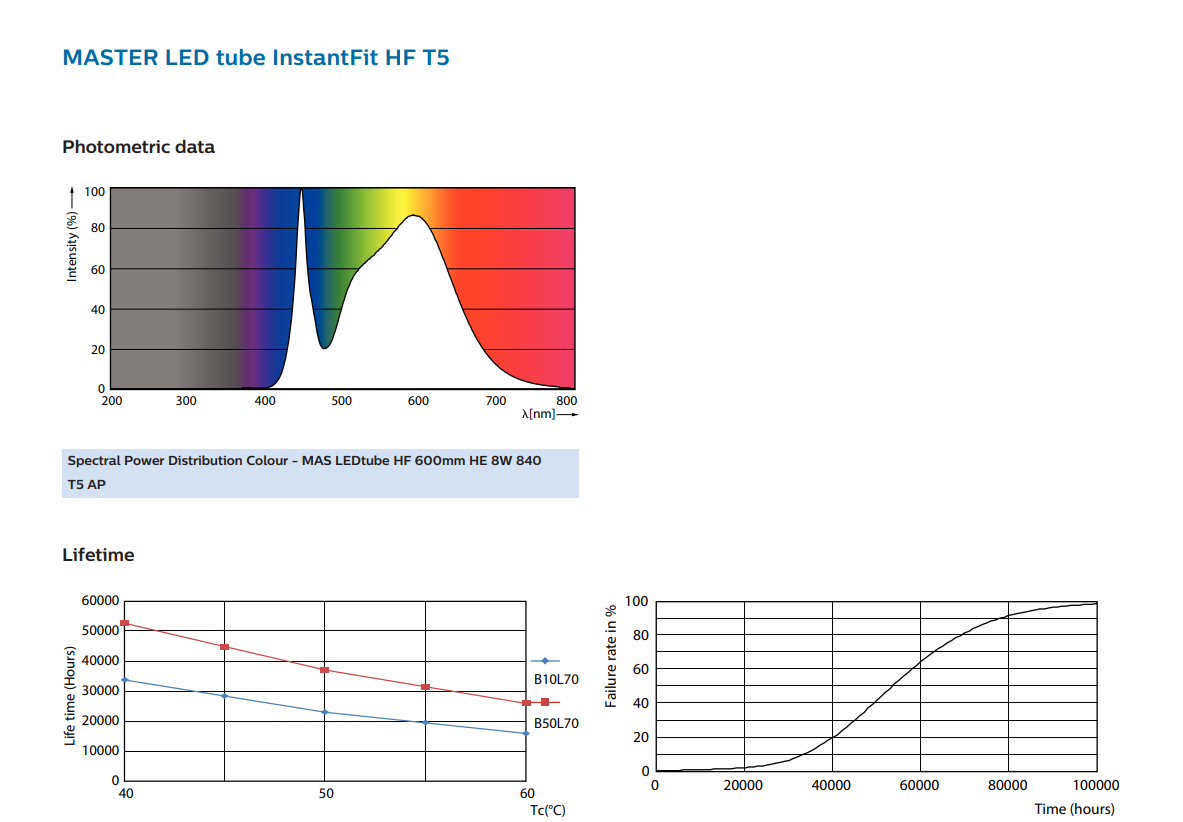 PHILIPS MASTER LED TUBE INSTANTFIT HF T5 4000K COOL WHITE G5 80V 8W 1,050LM 50,000HOURS CRI80 600MM (LEDTUBE TL5 HE 14W REPLACEMENT) [929001399508]