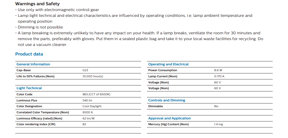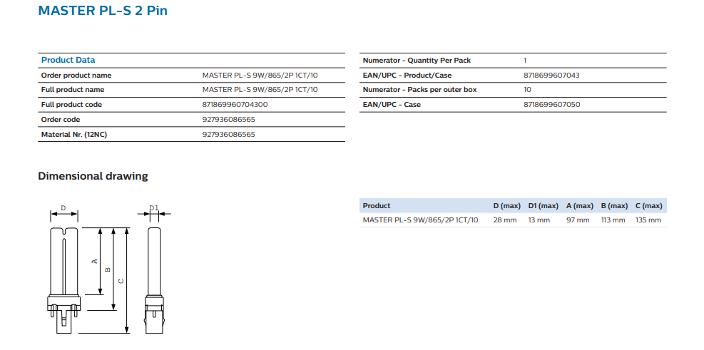 - Product Type: Compact Fluorescent Tube (PL-S)