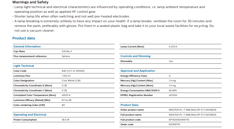 - Product Type: Compact Fluorescent Tube (PL-T)