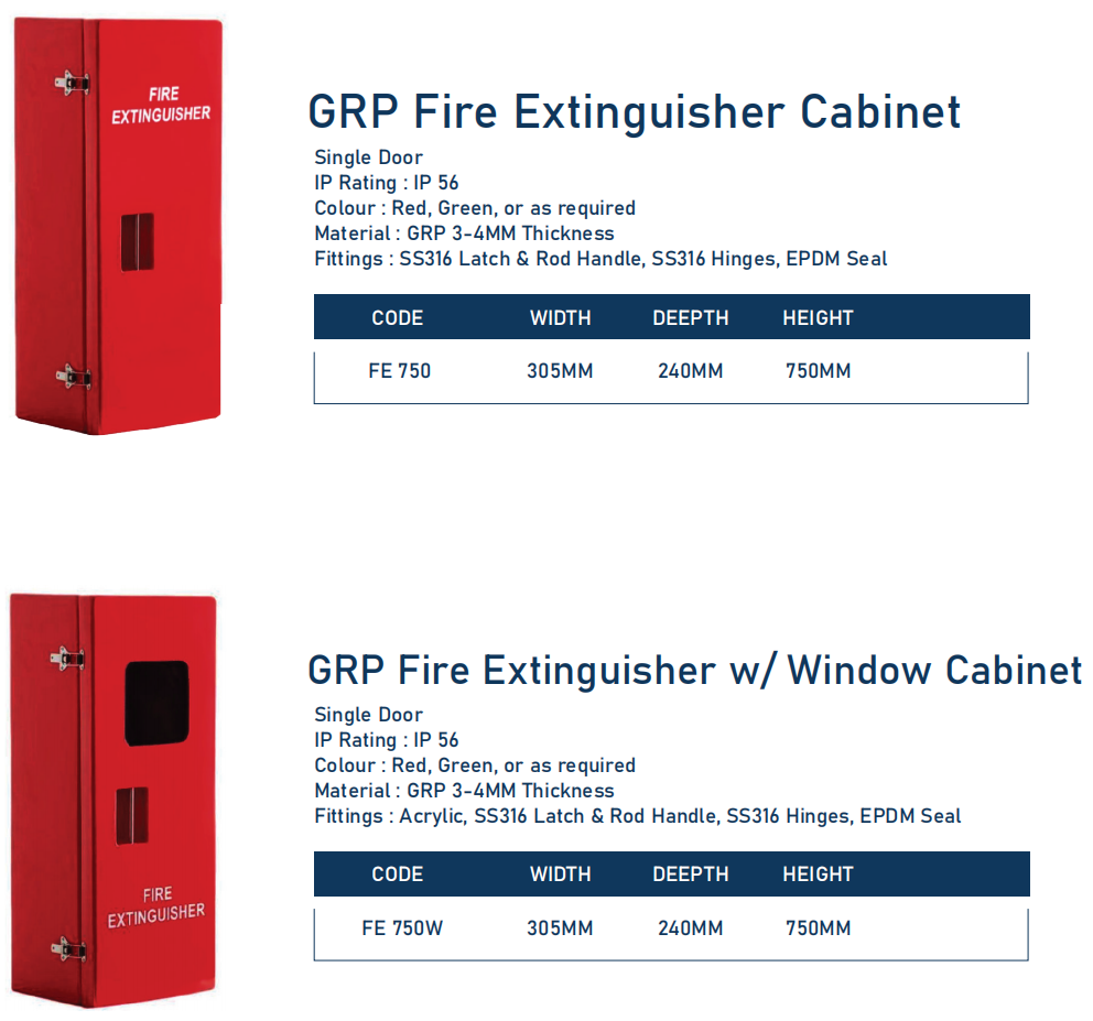GRP FIRE EXTINGUISHER CABINETS - FE750 SERIES