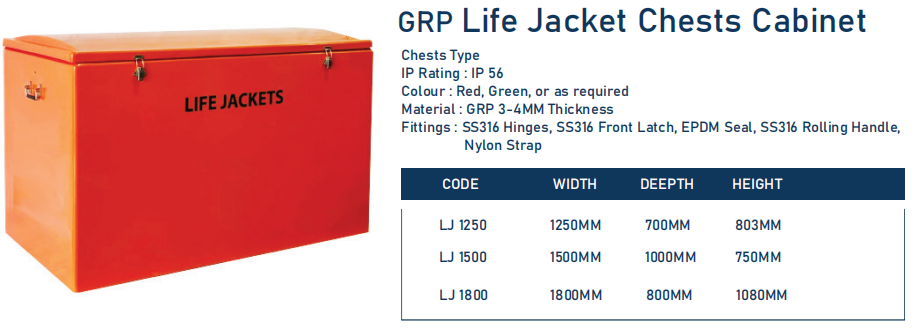 Joncan Composites GRP Life Jacket Cabinet (Chest Type) Joncan Composites GRP Life Jacket Cabinet (Chest Type) is designed for life jacket storage, crafted from Lloyds-approved composites with U...