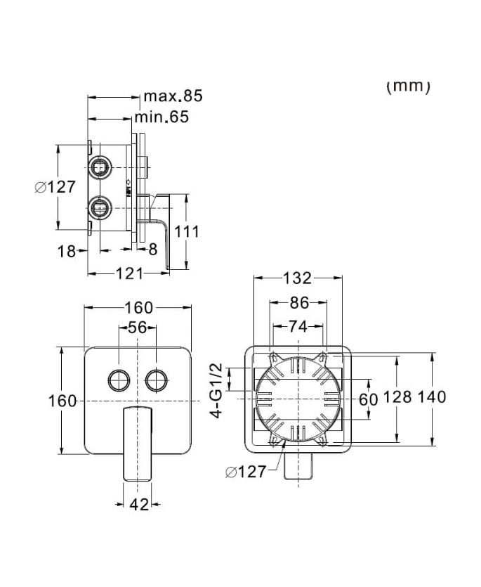 Bathtech Building Products Sdn Bhd Products Escuadra-n Switch Built-in Bath Shower Mixer, To Be Completed With Built-in Bath Shower Mixer Body A