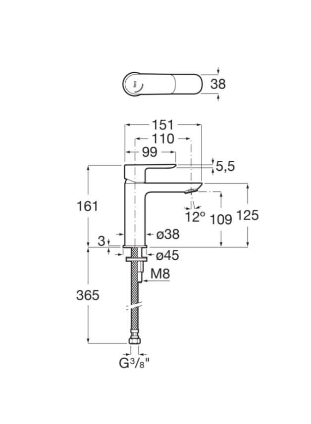 Cala Basin Mixer With Smooth Body. Cold Start. S-Size