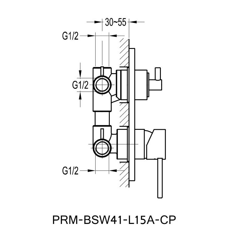 PRM-BSW41-L15A-CP Premtex single lever 13mm chrome plated brass concealed 5-way bath/shower mixer with 3-way diverter. SKU : PRMBSW41L15ACP201845