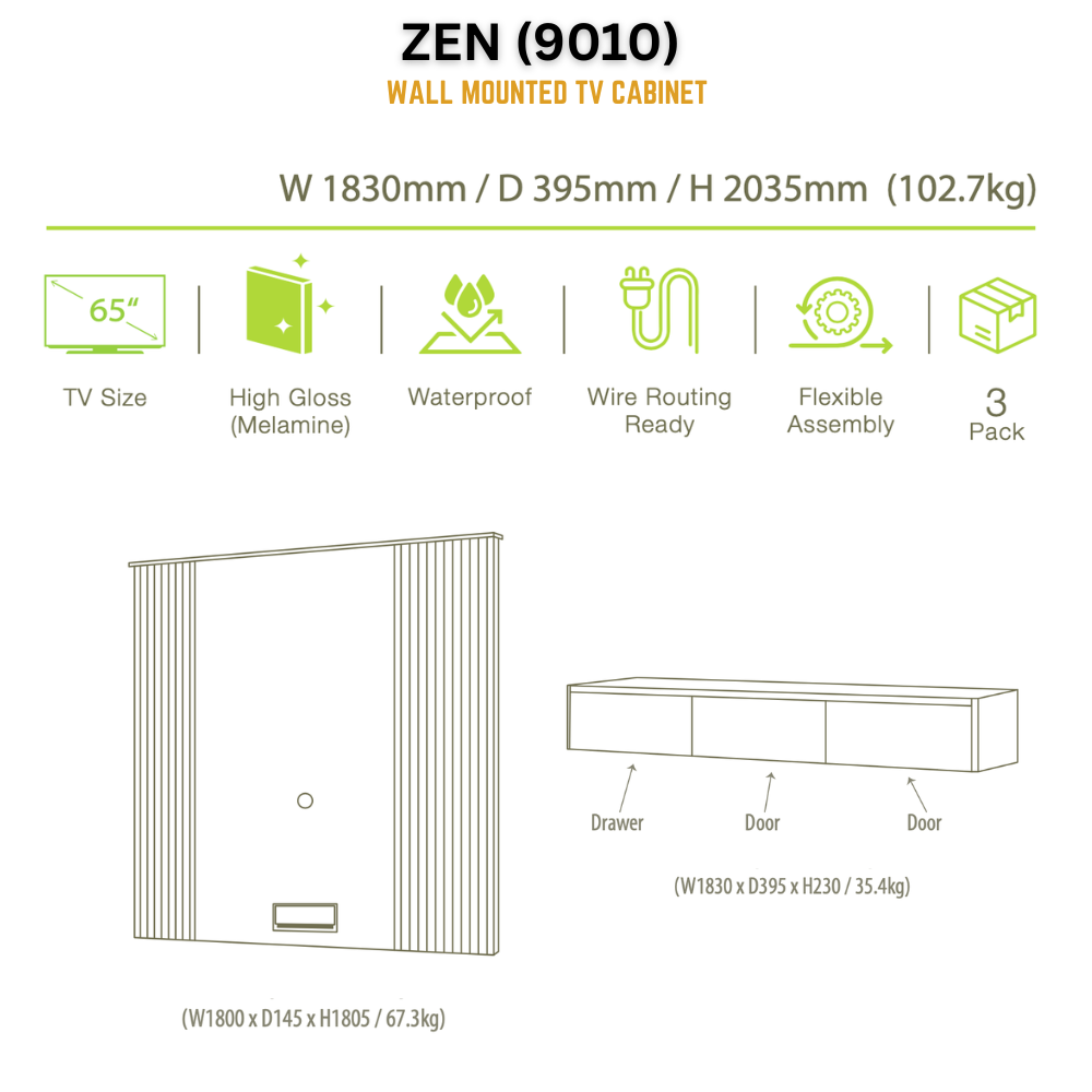 ZEN (9010) – 6ft Wall Mounted TV Cabinet Hanging Wall Mounted Modern TV Cabinet Set