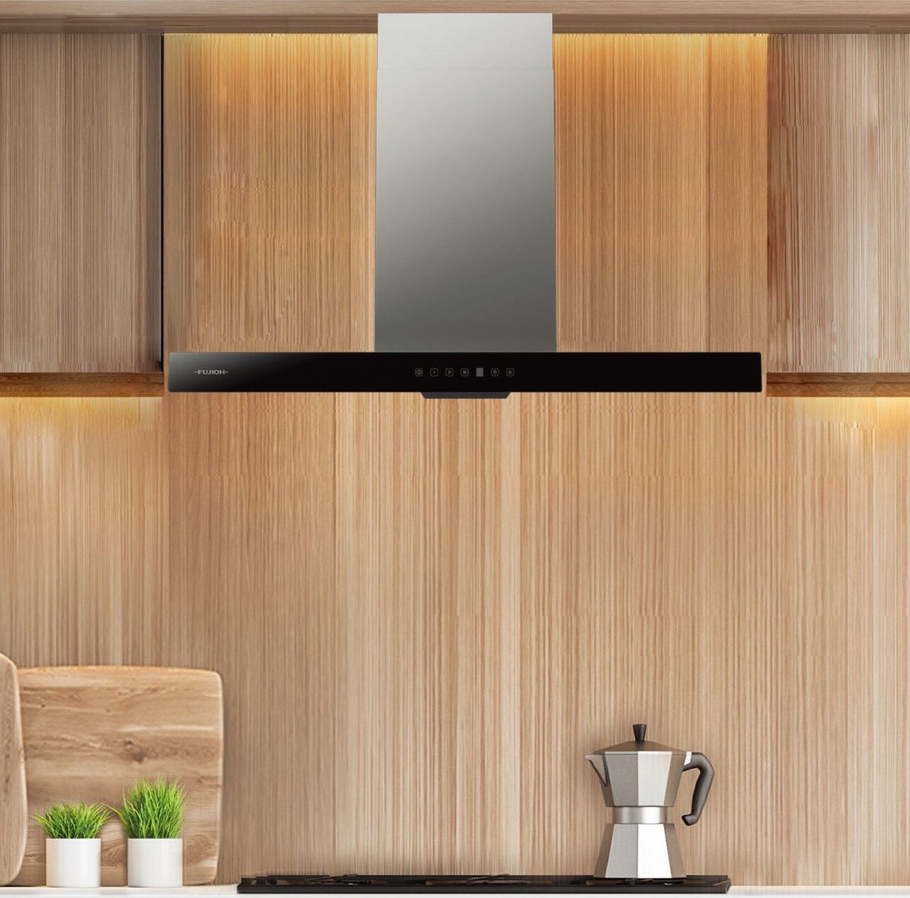 THE KUTCHENHAUSS DESIGN SDN. BHD. Products FUJIOH - 900mm Chimney Cooker Hood With Glass Panel | FR-MT1990 V
