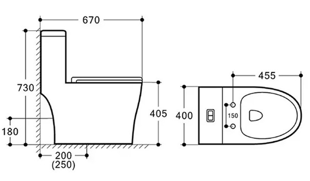 IT-8609-BL Itto Black Series Washdown Rimless One-PieceToilet Bowl Inside : White P-Trap : 180mm S-trap : 150mm / 200mm / 250mm Size : 670 x 400 x 730mm SK...
