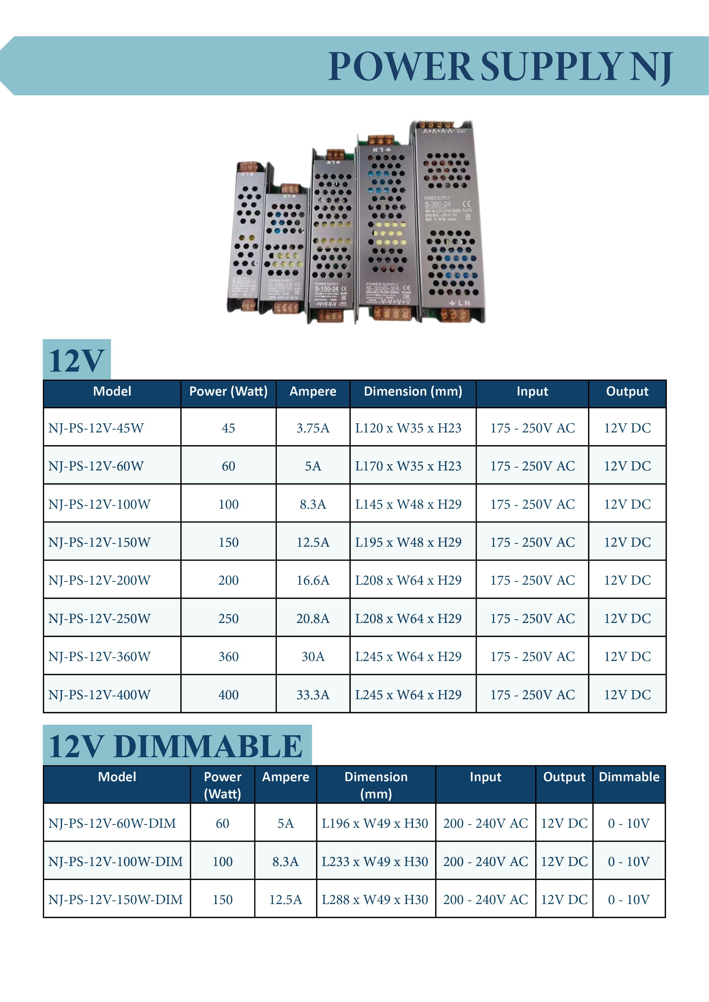 Power Supply NJ 48V 100W/200W/400W