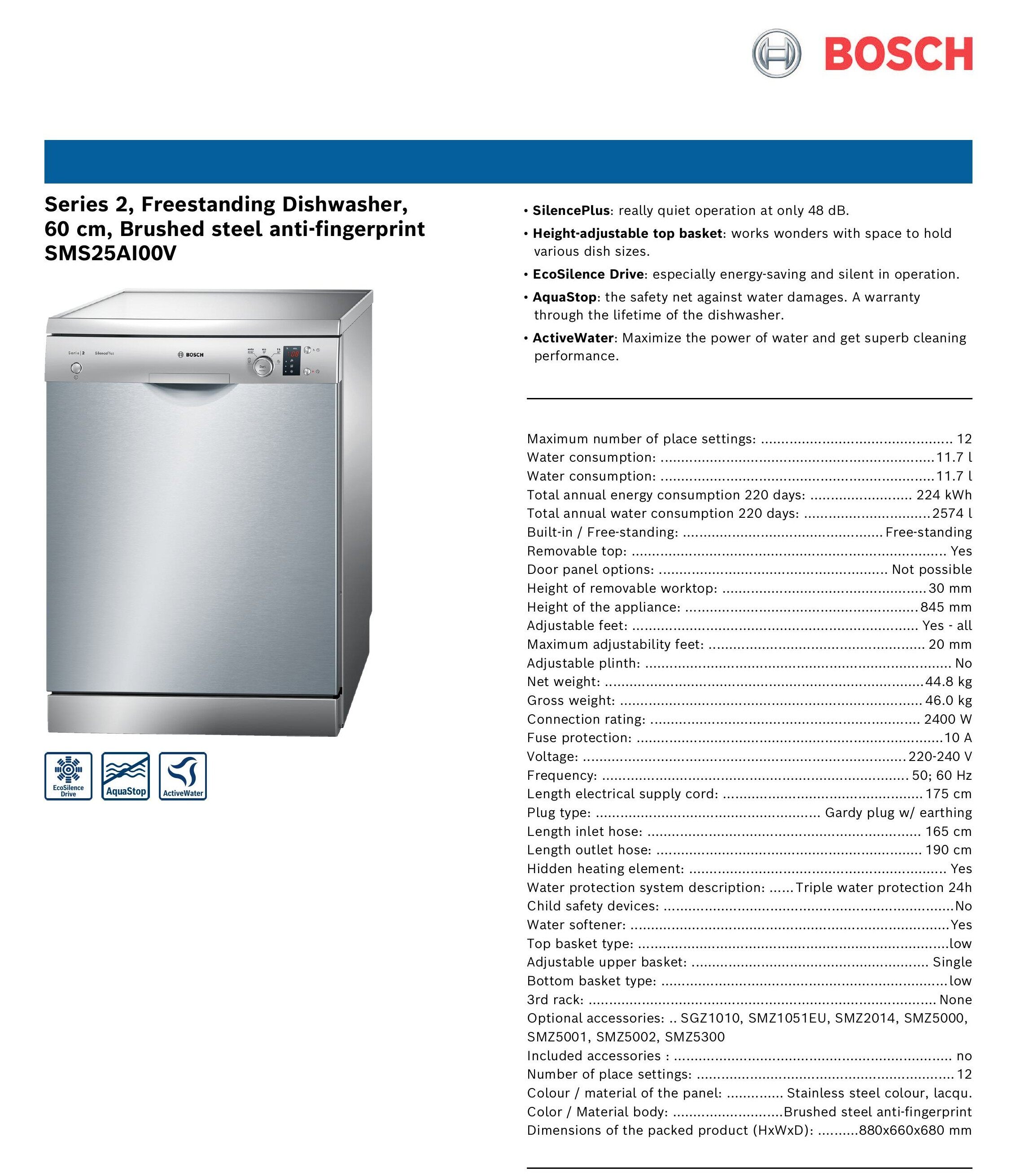 THE KUTCHENHAUSS DESIGN SDN. BHD. Products BOSCH - 60cm Series 2 Freestanding Dishwasher (12 Place Settings) | SMS26AI00Q