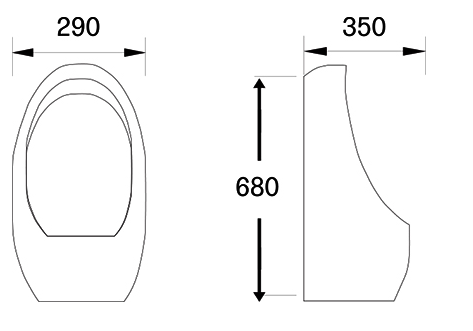 WHU109 Docasa Omo Oval Wall Hung Urinal Bowl c/w : DCS_UC1.5 1.5" Urinal Connector Size : 290 x 250 x 680mm Inlet : Top Inlet Outlet : P-Trap