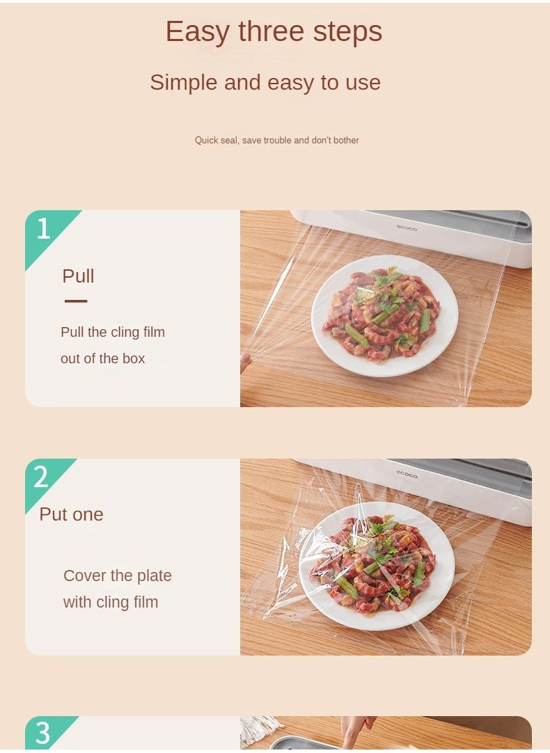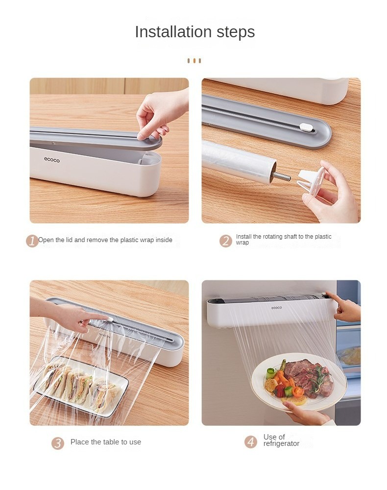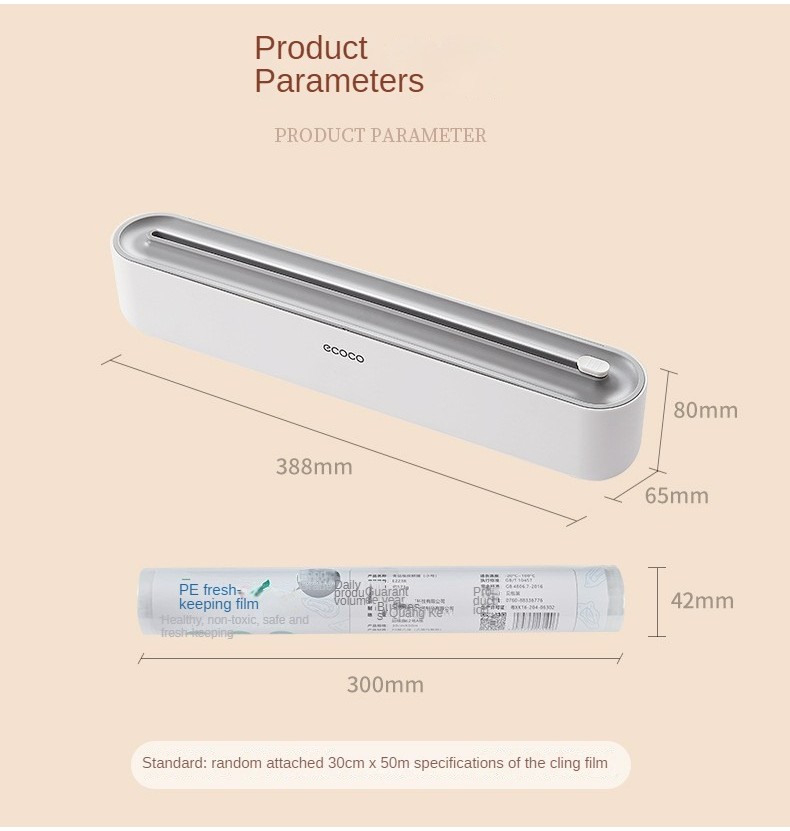LODER ECOCO Food Packaging Cling Film Cutter Kitchen Food Grade Cling Bag Plastic Wrap Cutter Cling Film Dispenser