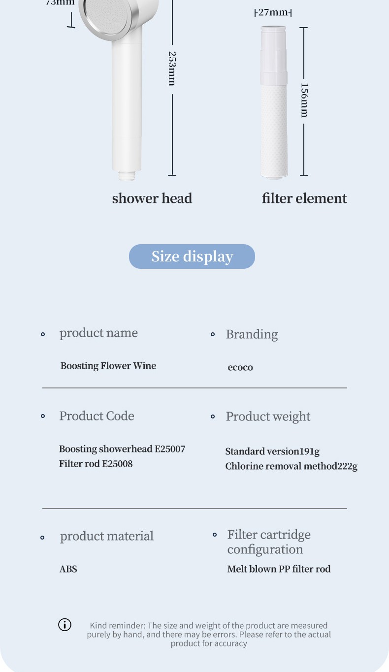 LODER ECOCO Handheld Bathroom Showerhead With Filter Build Water Pressure Enhancement And Rainfall Experience