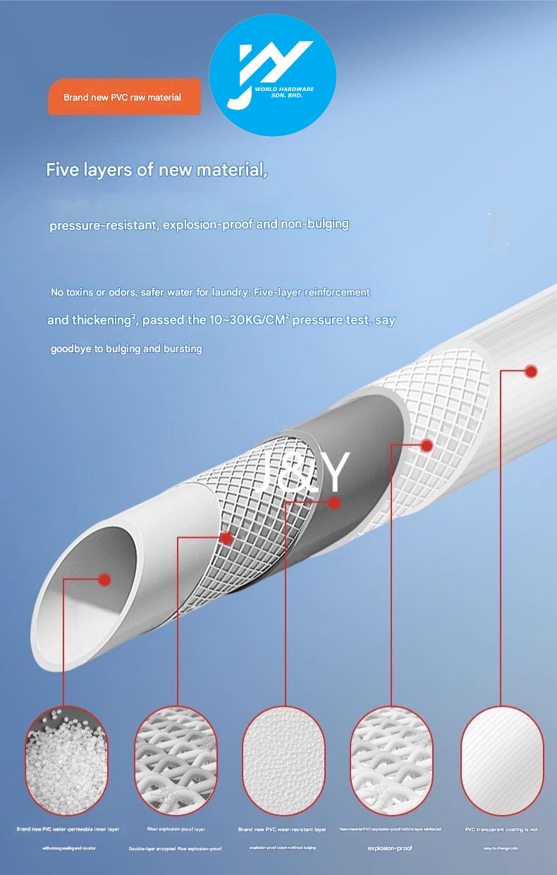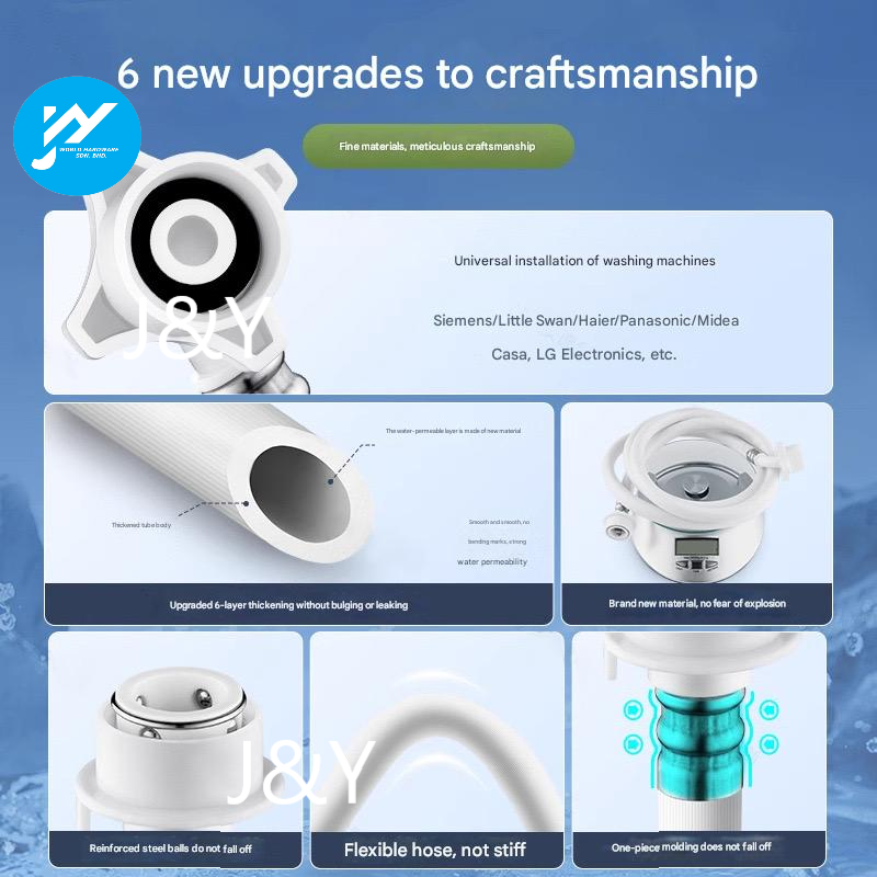 J&Y World Hardware Sdn Bhd Products Washing Machine Inlet Hose Washer Pipe Connector 1M/1.5M/2M/2.5M/3M/4M/5M Premium Quality