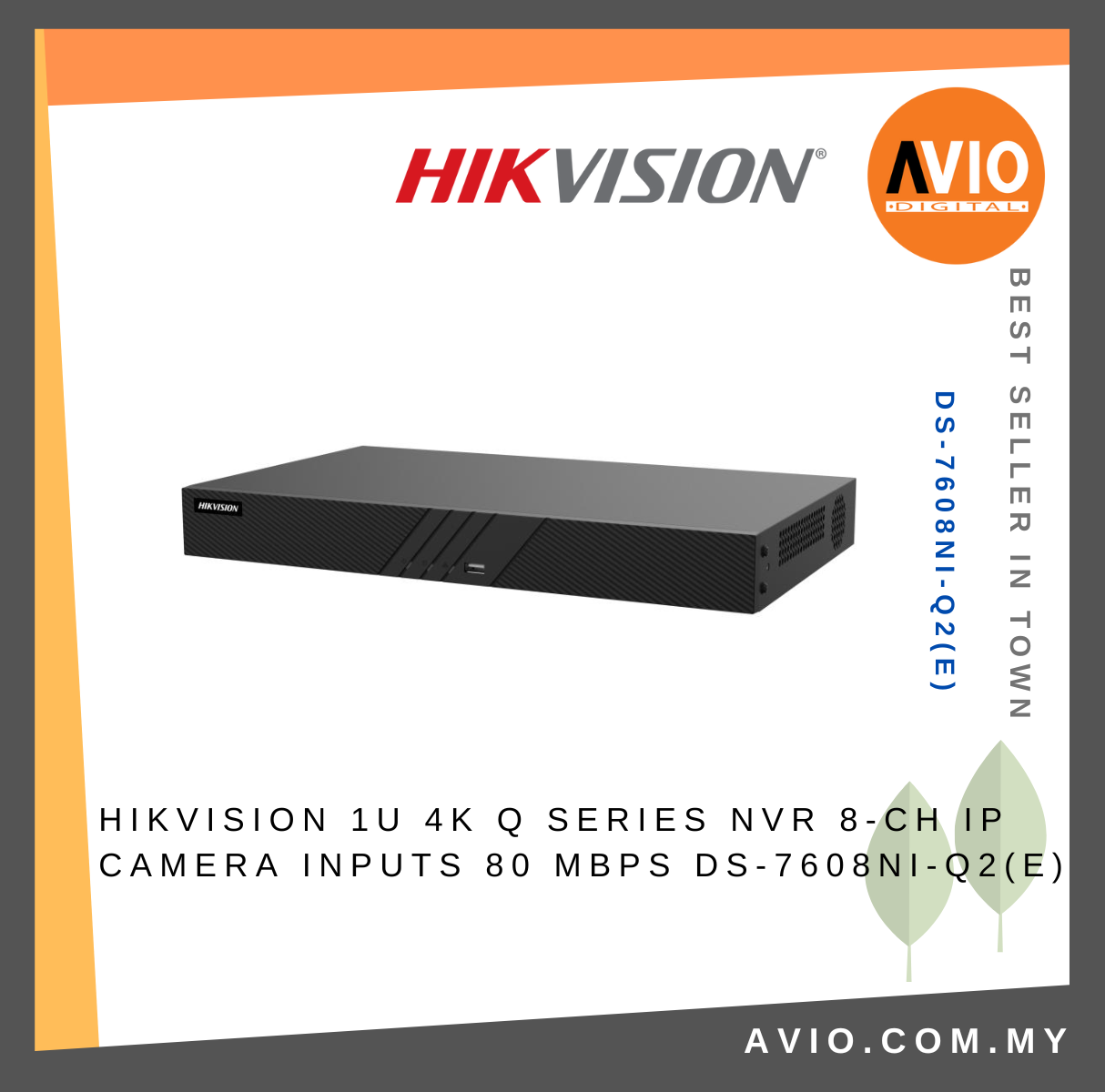 Avio Digital Products HIKVISION 1U 4K Q Series NVR 8-ch IP Camera Inputs 80 Mbps DS-7608NI-Q2(E)
