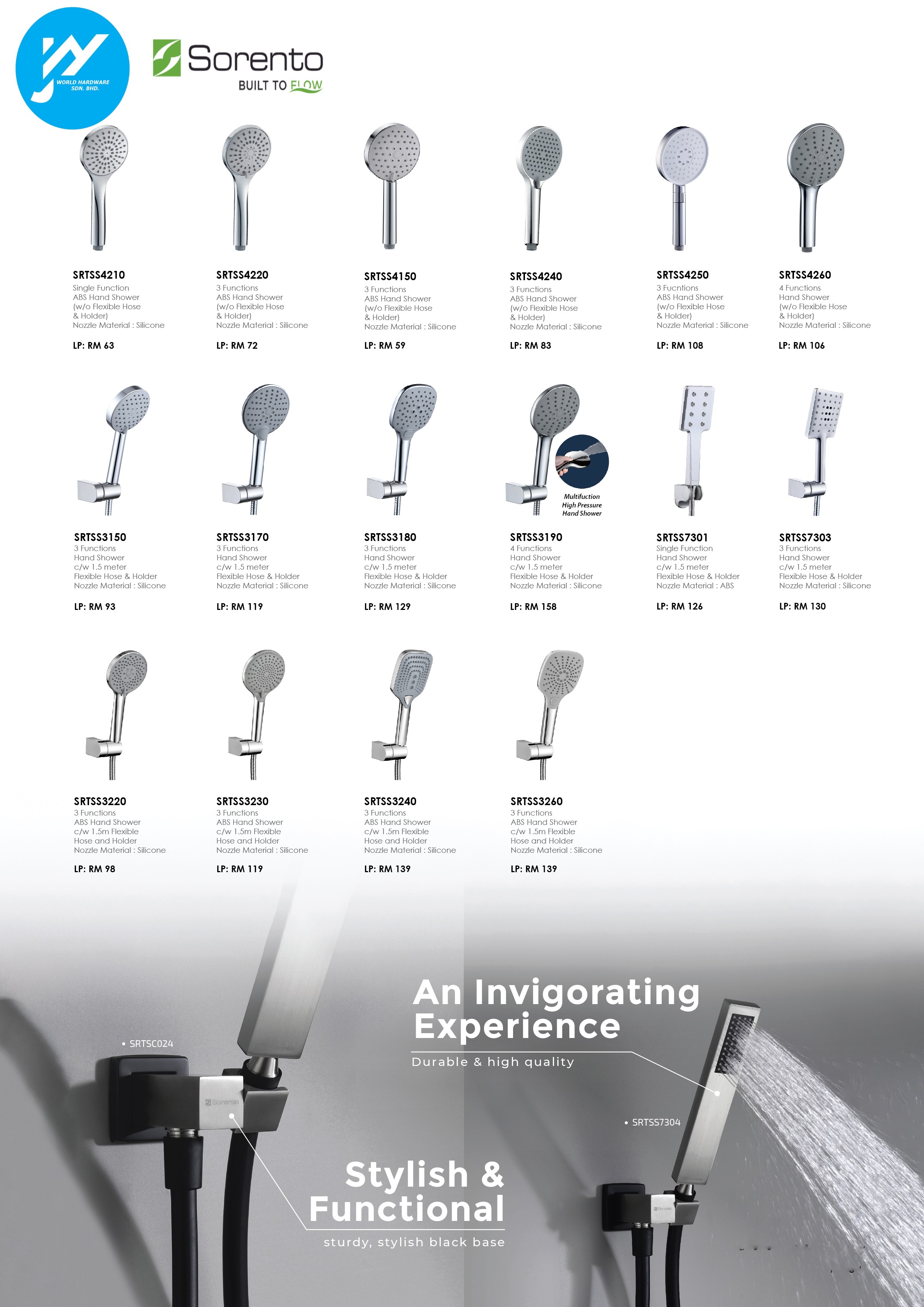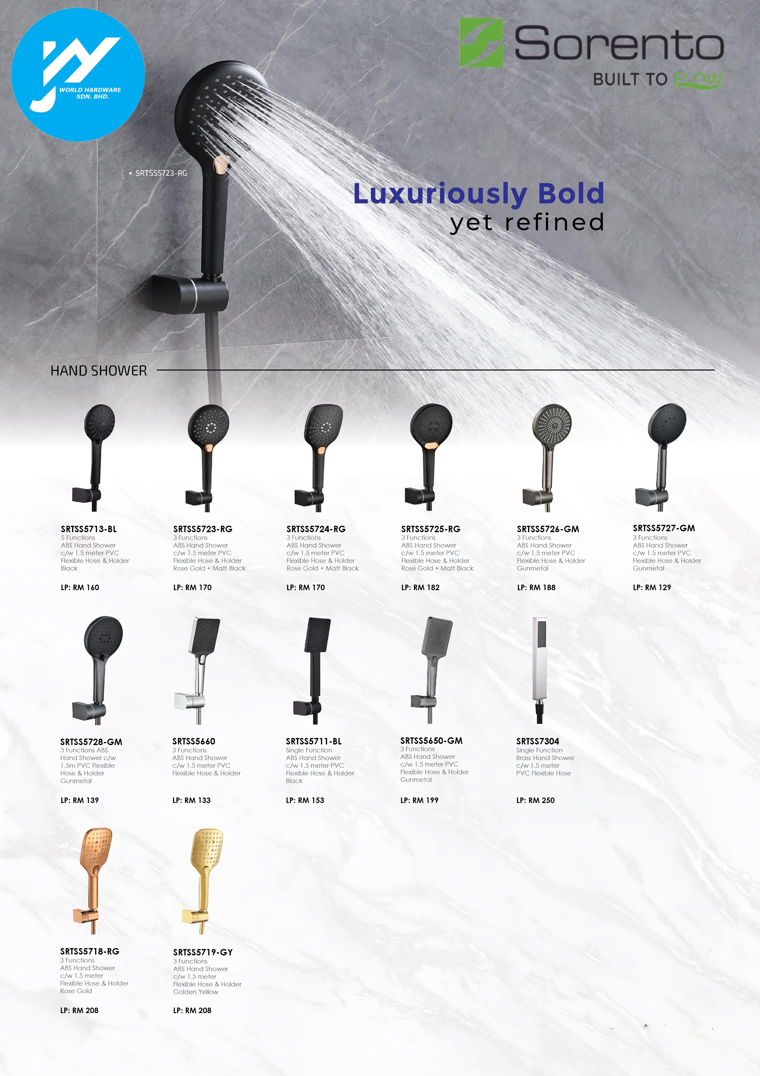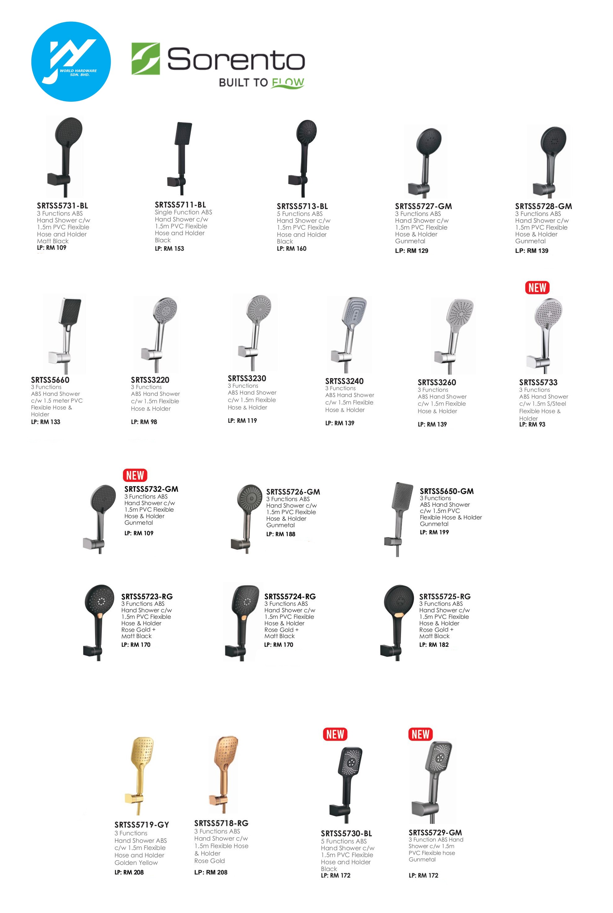 J&Y World Hardware Sdn Bhd Products Sorento Bathroom Toilet Handheld Make High Turbo Pressure Shower Head Water Saving SET 3 IN 1