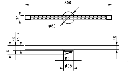 FLE 131 Felice Satin Finishing 304 S/Steel Floor Grating 800mm x 30mm x 28mm Thickness : 3.0mm Code : FLE131300495