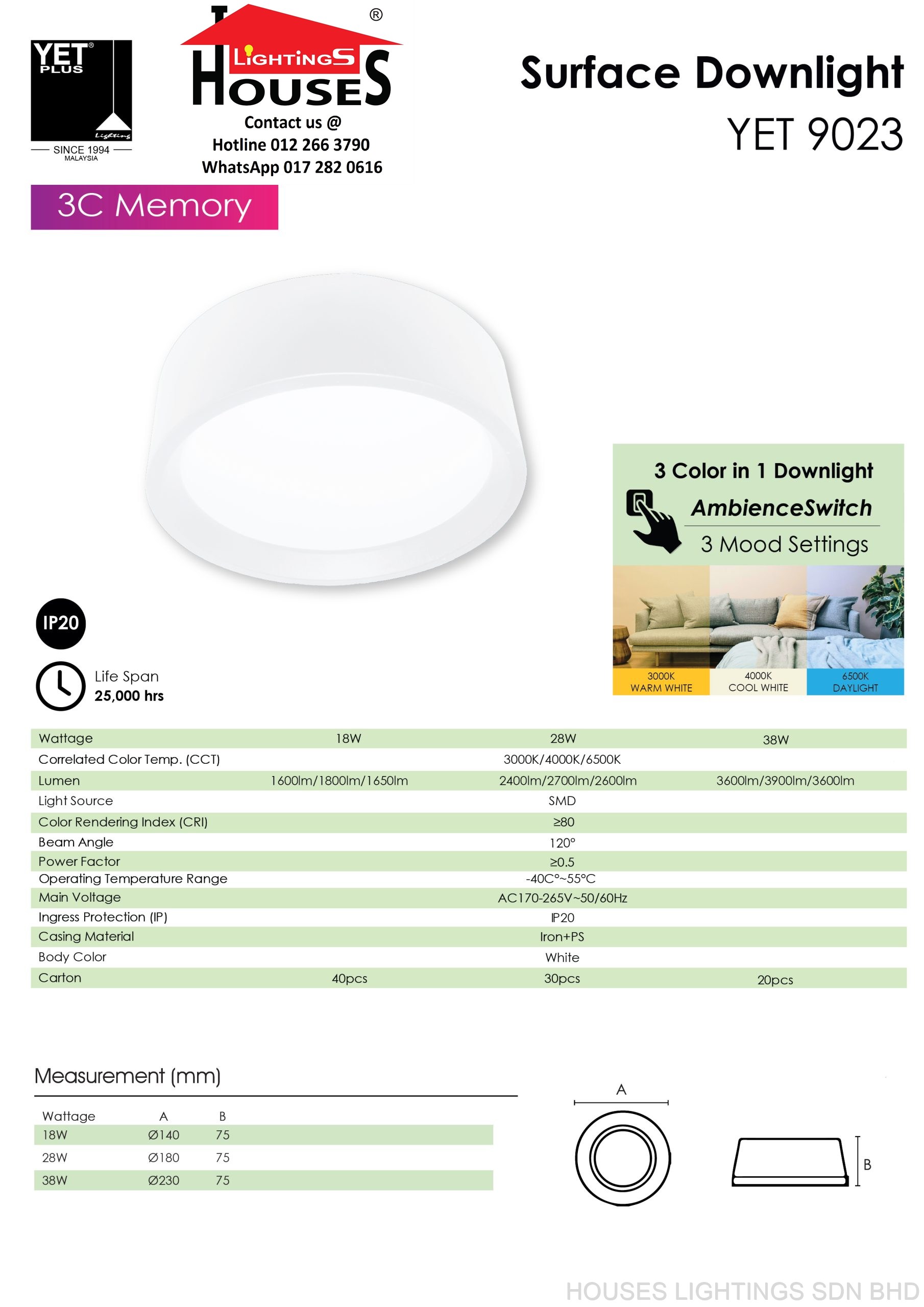 Houses Lightings Sdn Bhd Products YET 9023 18W 28W 38W WH R LED-3C (MEMORY)
