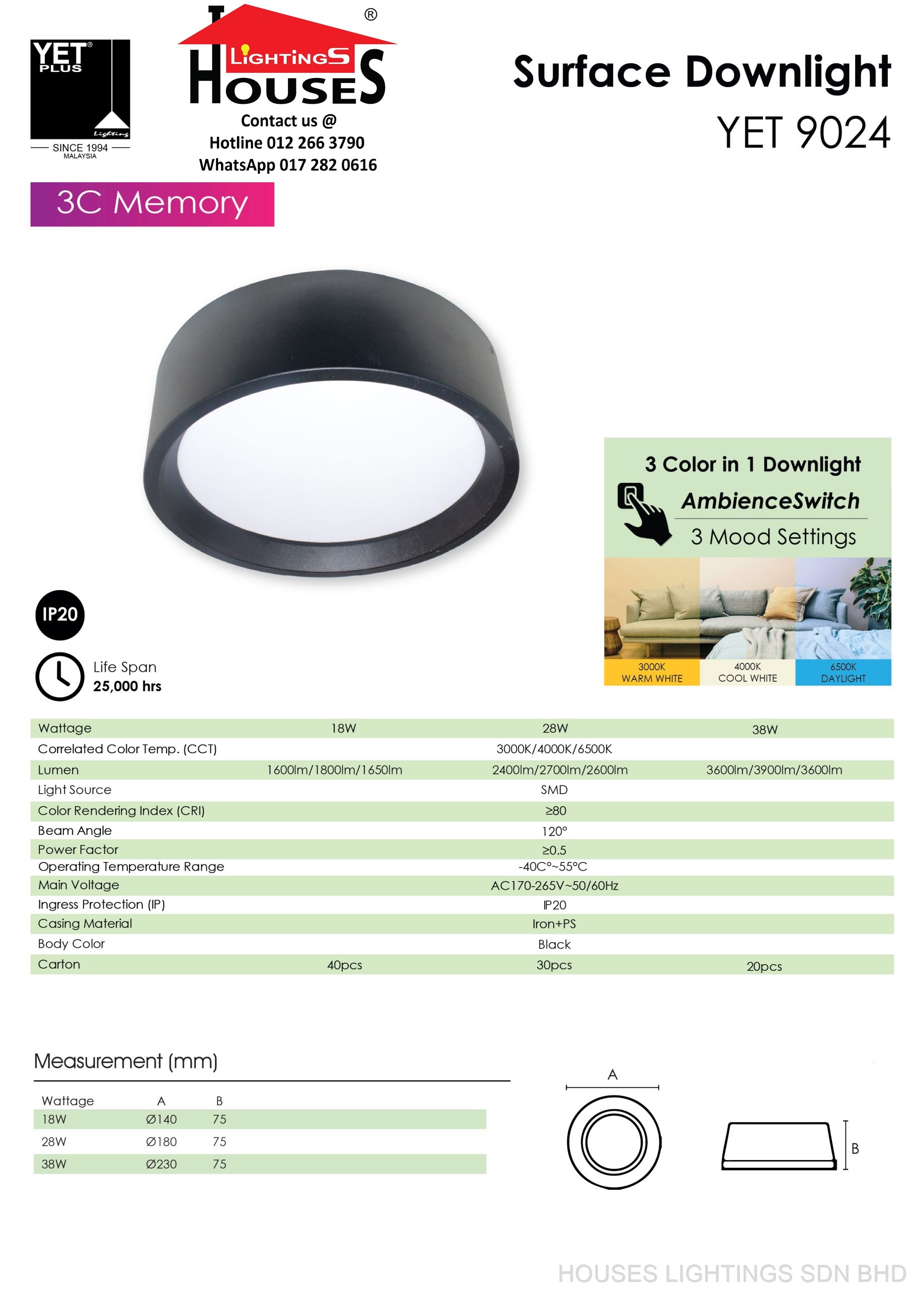 Houses Lightings Sdn Bhd Products YET 9024 18W 28W 38W BK R LED-3C (MEMORY)