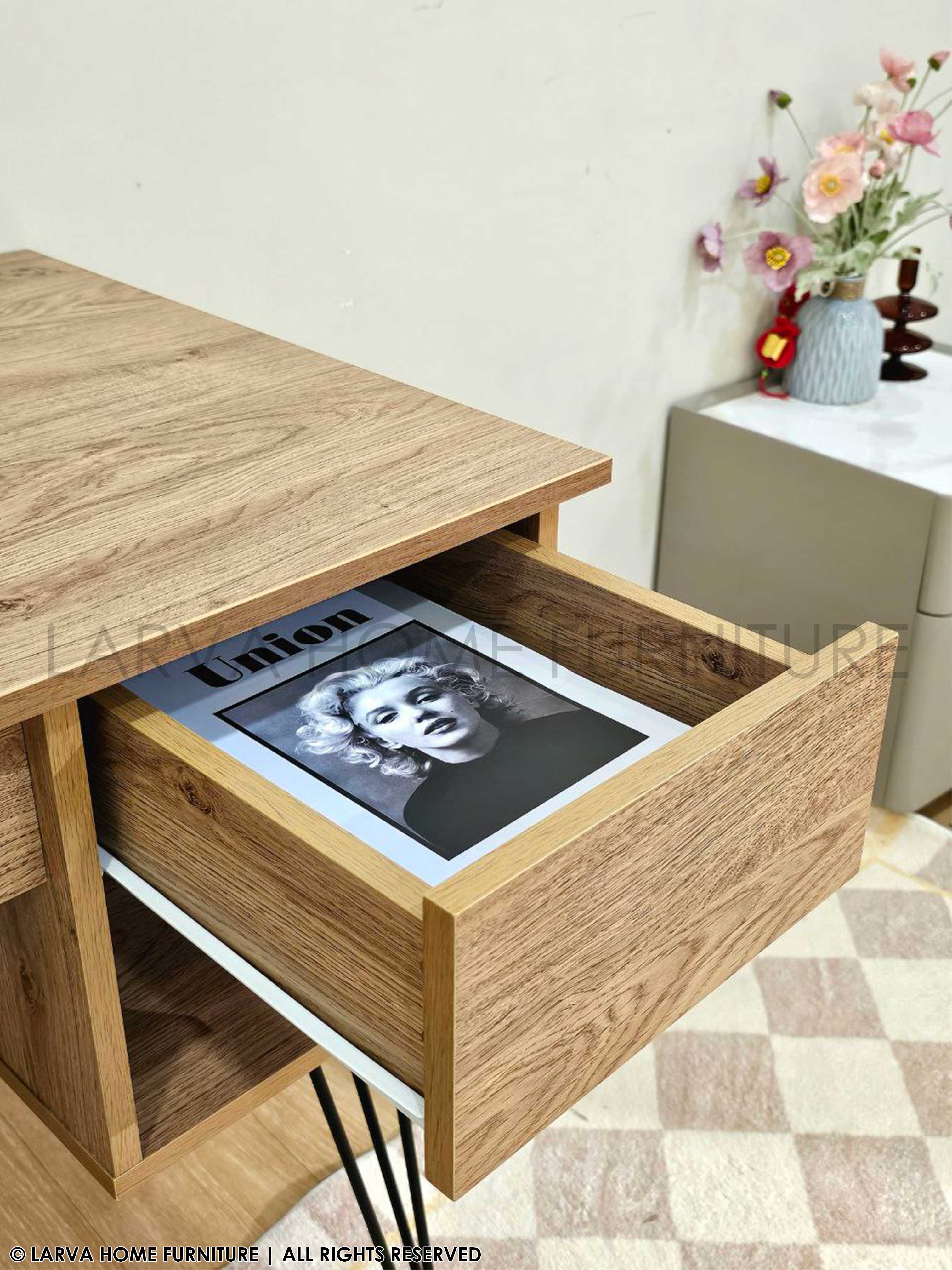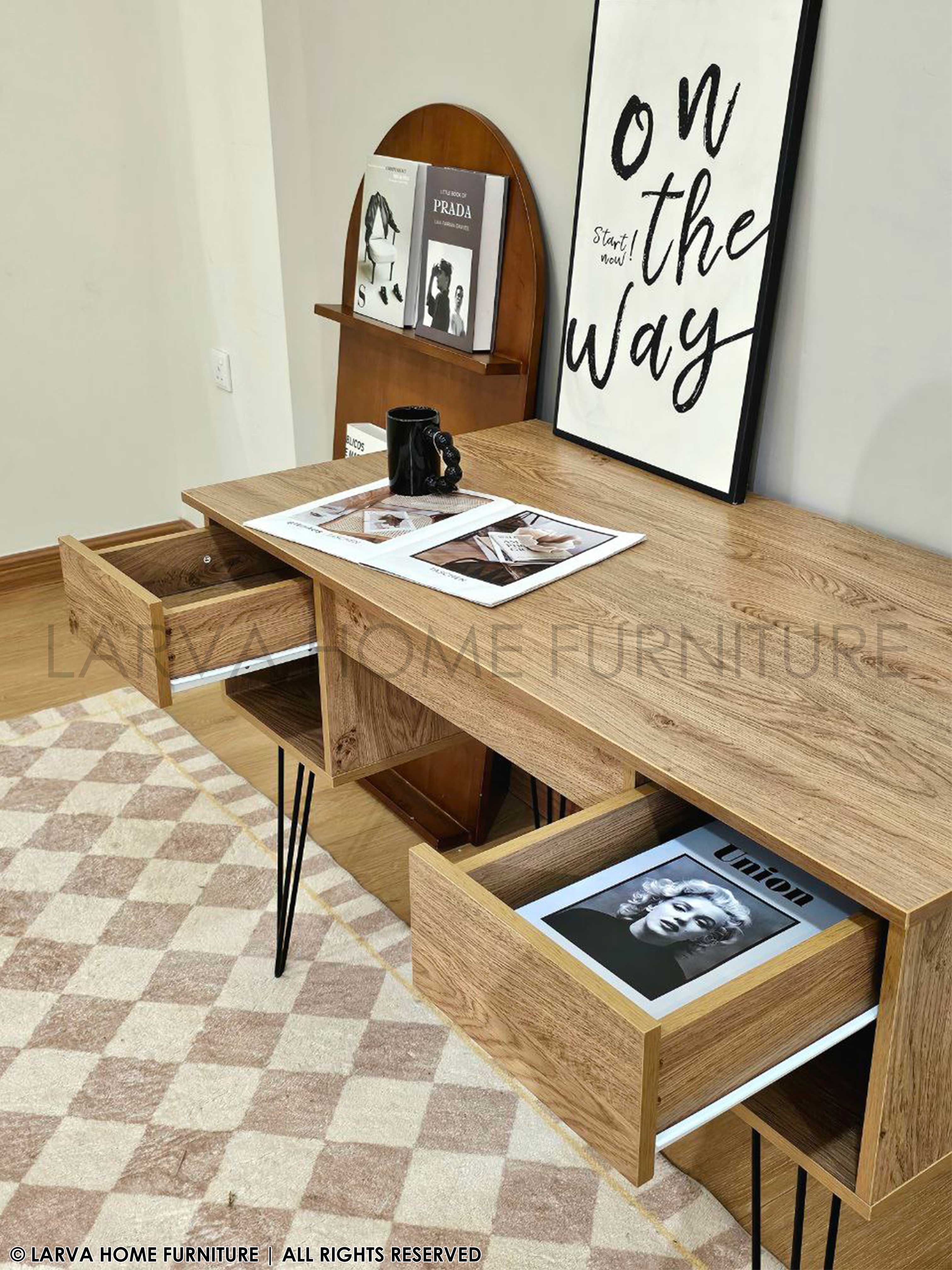 This Roy Study Table blends modern simplicity with everyday practicality, creating a comfortable space to focus and create. Its clean lines and balanced proportions make it easy to fit into home offices, bedrooms, or study corners. Designed to keep your space neat and organised, it supports both work and lifestyle needs. Perfect for students, professionals, or anyone building a calm work-from-home routine. A modern essential that makes productivity feel effortless.