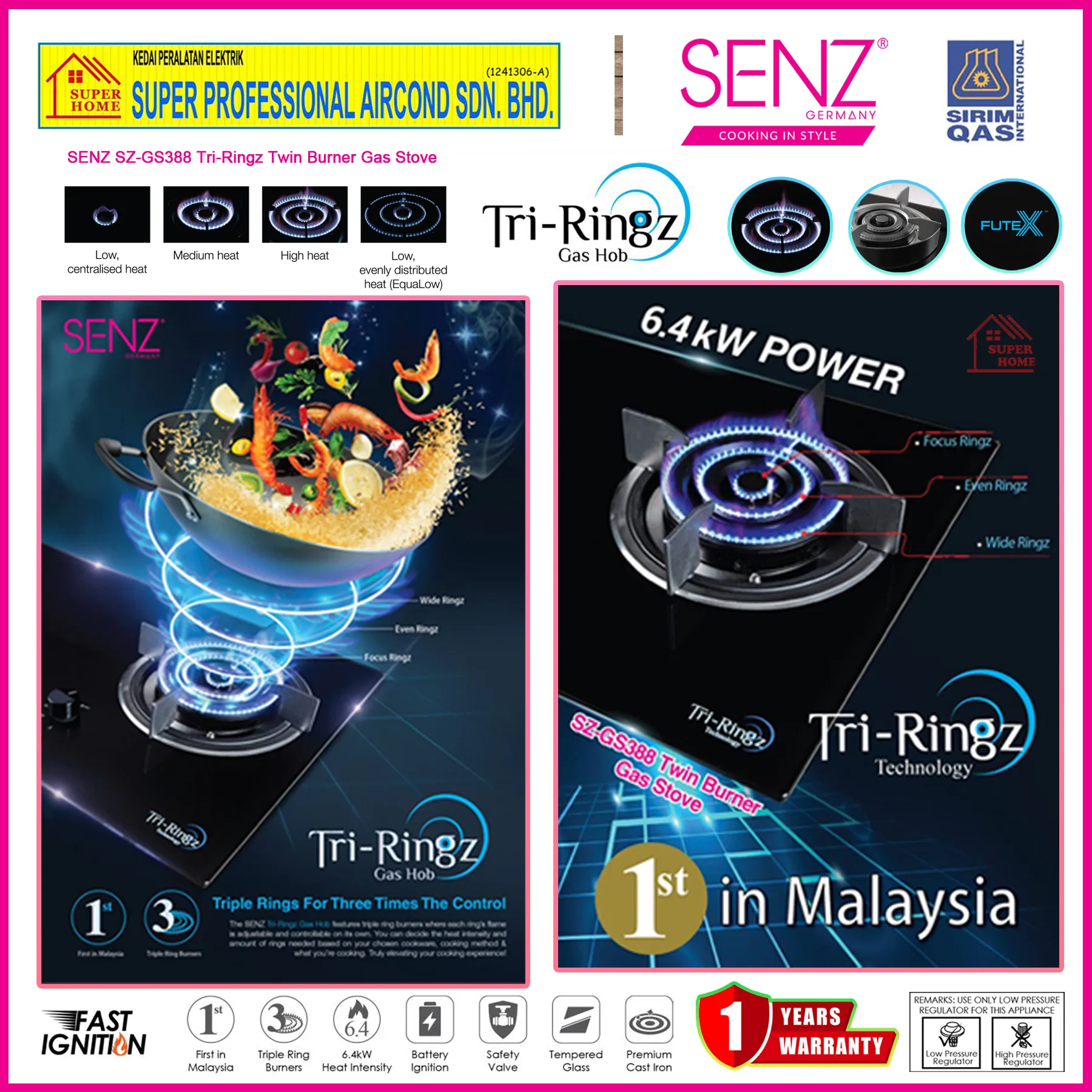 - Senz Built-in Hob SZ-GS388 Tri-Ringz Twin Burner Gas Stove