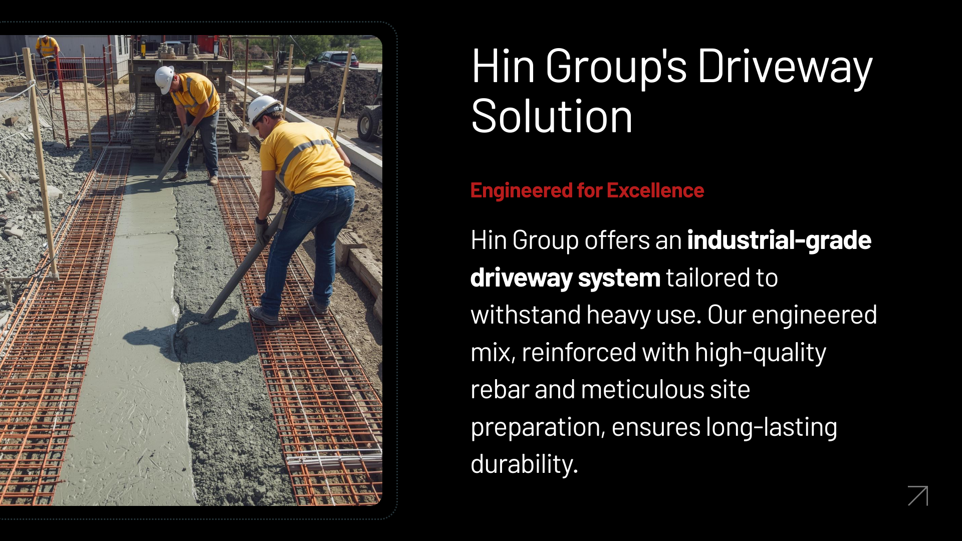 Using industrial-grade ready-mix concrete (G30–G60) ensures high compressive strength, making these driveways suitable for heavy machinery, delivery trucks, and continuous operations. [1].