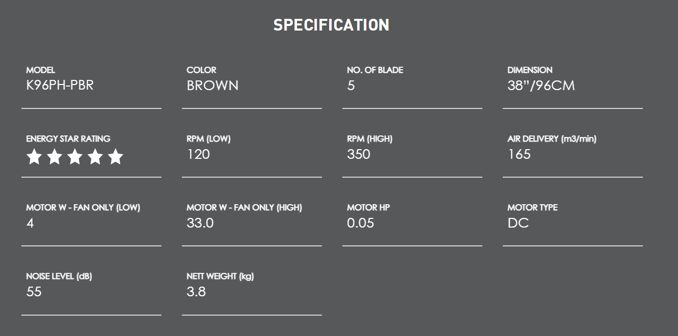 Houses Lightings Sdn Bhd Products KDK K96PH-PBR (38")