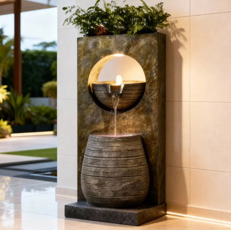 这款喷泉采用精湛工艺和高品质材质打造,兼具耐用性与时尚感。它完美融合美学与实惠,是追求顶级水景效果而不超预算人士的理想选择。精美复杂的设计和优质结构,无论置于花园、露台还是室内空间,都能留下深刻印象。