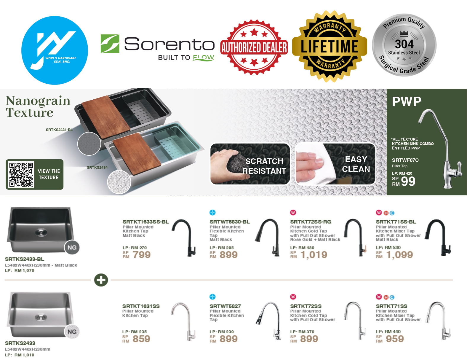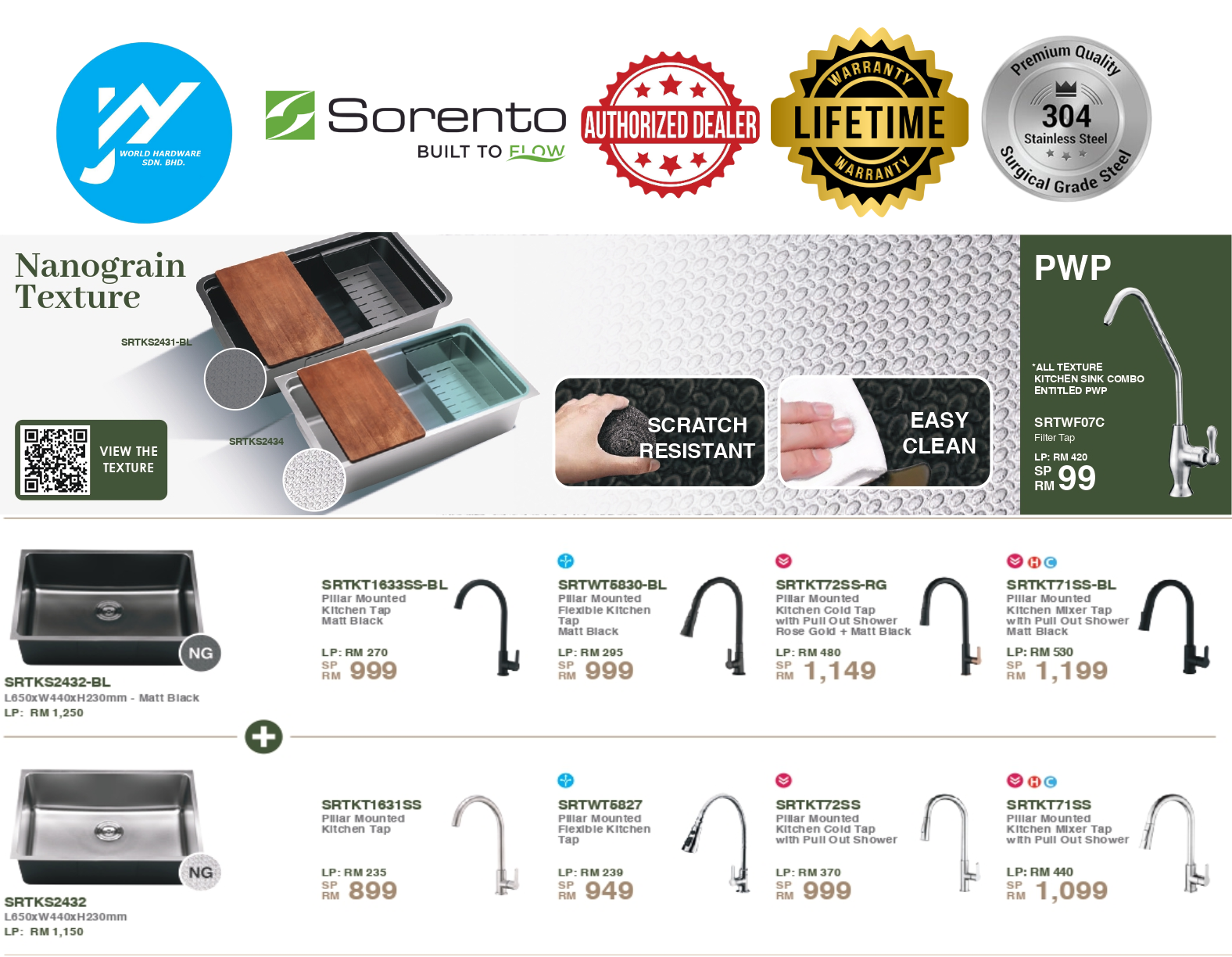 Sorento Nanograin 304 Stainless Steel Kitchen Handmake High End Sink Sinki Dapur Single Bowl