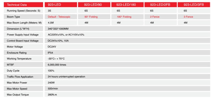 RANGER G-RGB-DC-PRO-923-L-PRO: ~ DC Motor, ~ AC110-220V±10% Supply Voltage, ~ 3~6m Lane Width ~ Adjustable Open & Closing Time ~ 6million times Operation Lifespan, IP54 Rating ...