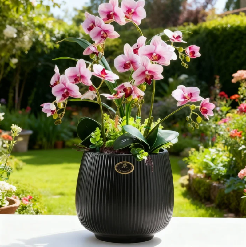 用我们 优雅陶瓷花盆系列 的陶瓷花盆,为您的花园或室内空间增添格调。这款花盆经过精心设计与制作,是设计美感与实用功能的完美结合之作。宽敞的内部空间,让您喜爱的植物自由生长、茁壮成长。
