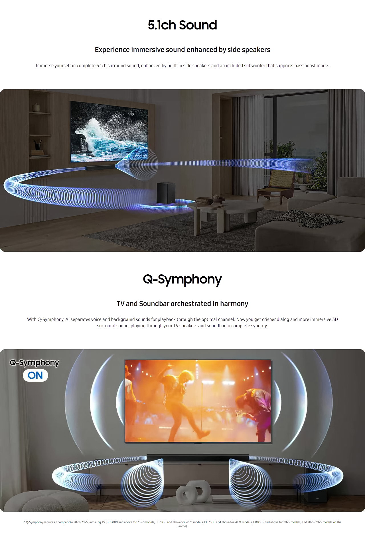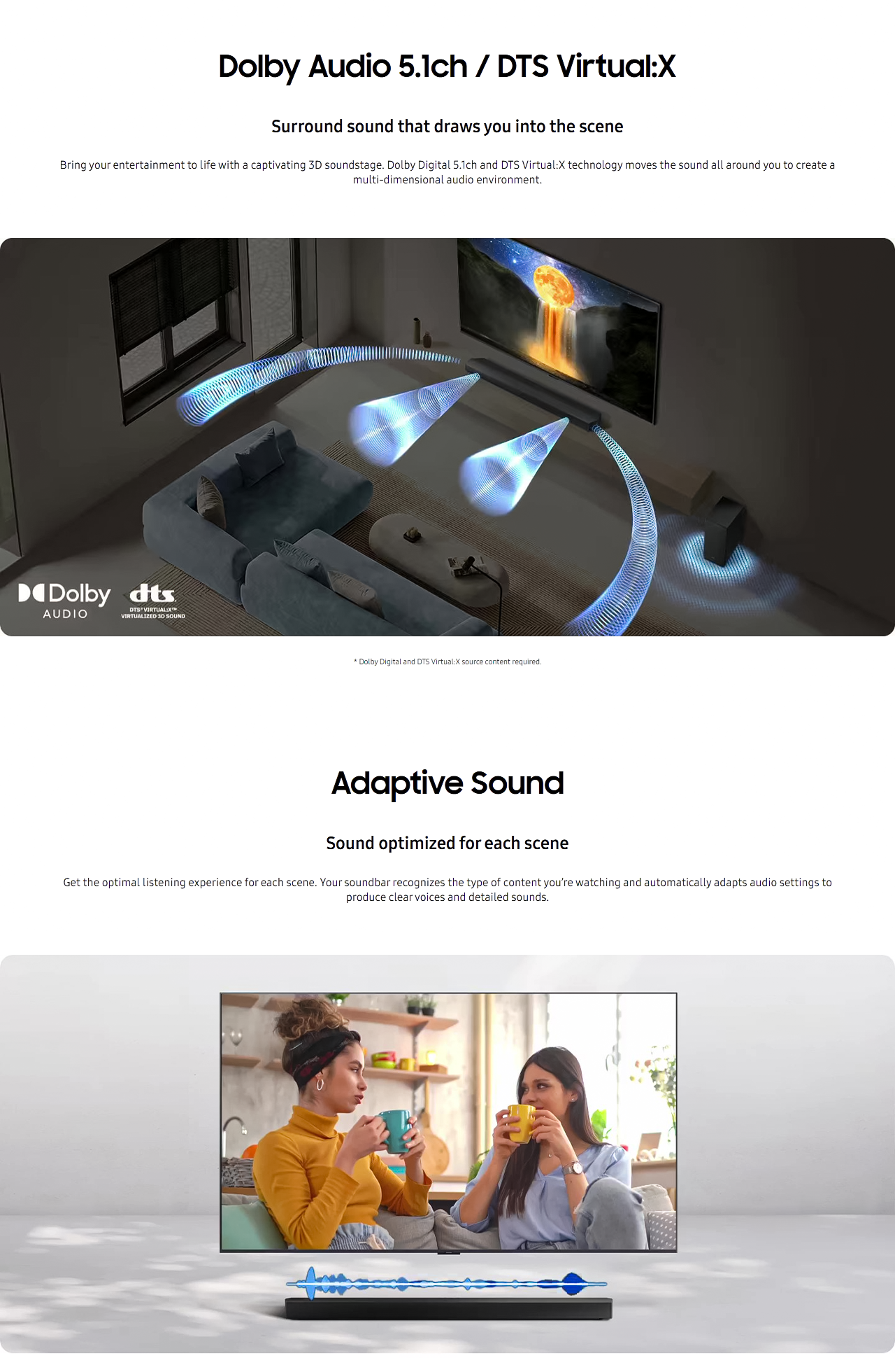 Highlights 5.1ch Sound Q-Symphony Dolby Audio 5.1ch / DTS Virtual:X Adaptive Sound
