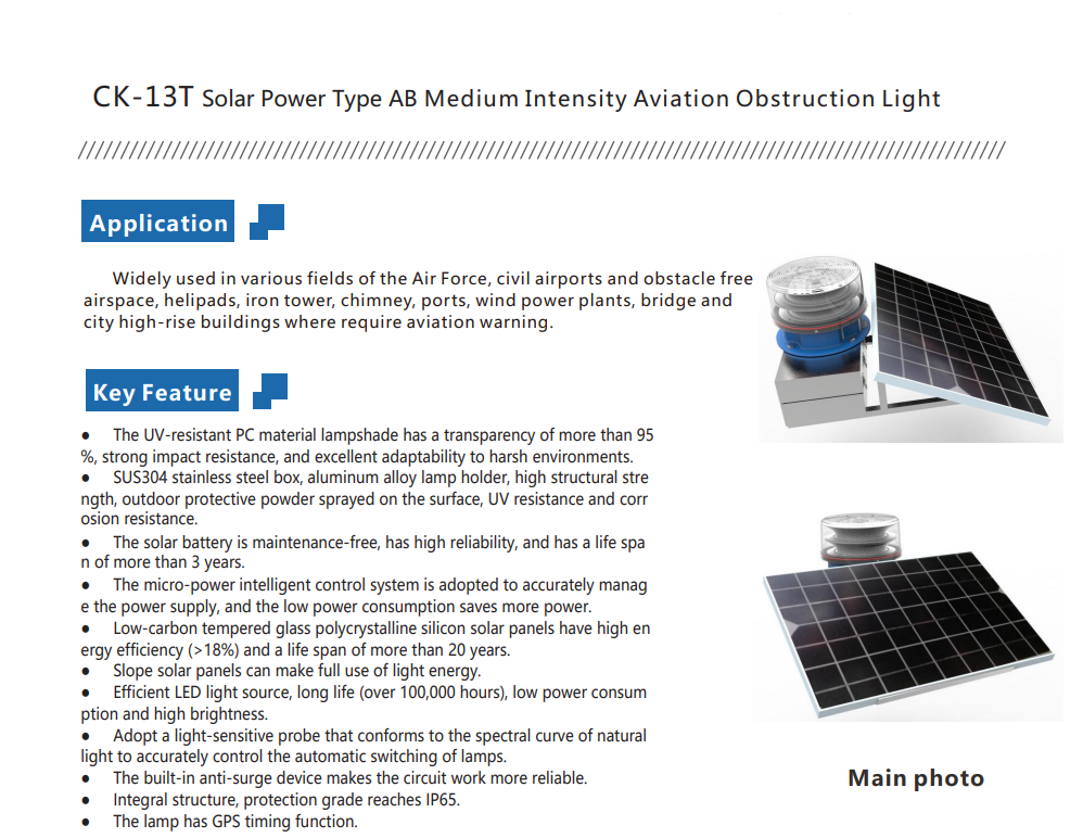 Type: Solar Power Type AB Medium Intensity LED Aviation Obstruction Light