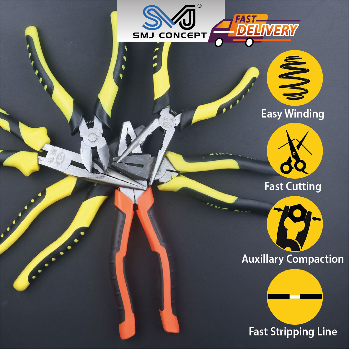 Product Description The SMJ Concept Multi-Function Pliers Series is designed for daily repairs, renovation work, and DIY projects. Built for durability and comfort, these tools are suitable for bot...